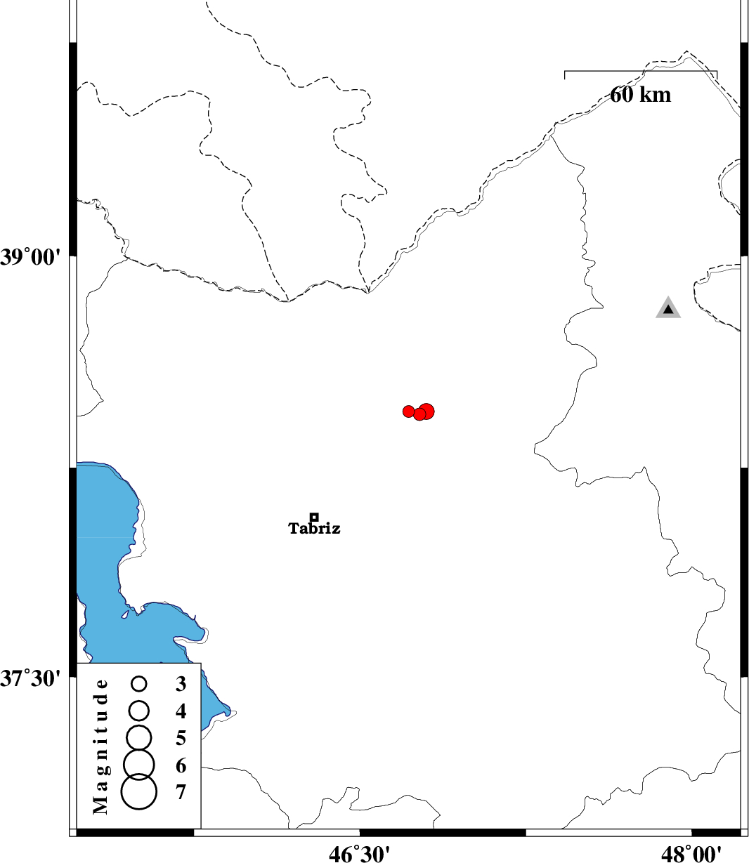 | 2013/06/25 | 08:55:01.8 | 13:25:01.8 | 38.45 | 46.72 | 14 | ML:2.4 | Azarbaijan Sharghi Province, 32 km West of Ahar | ||