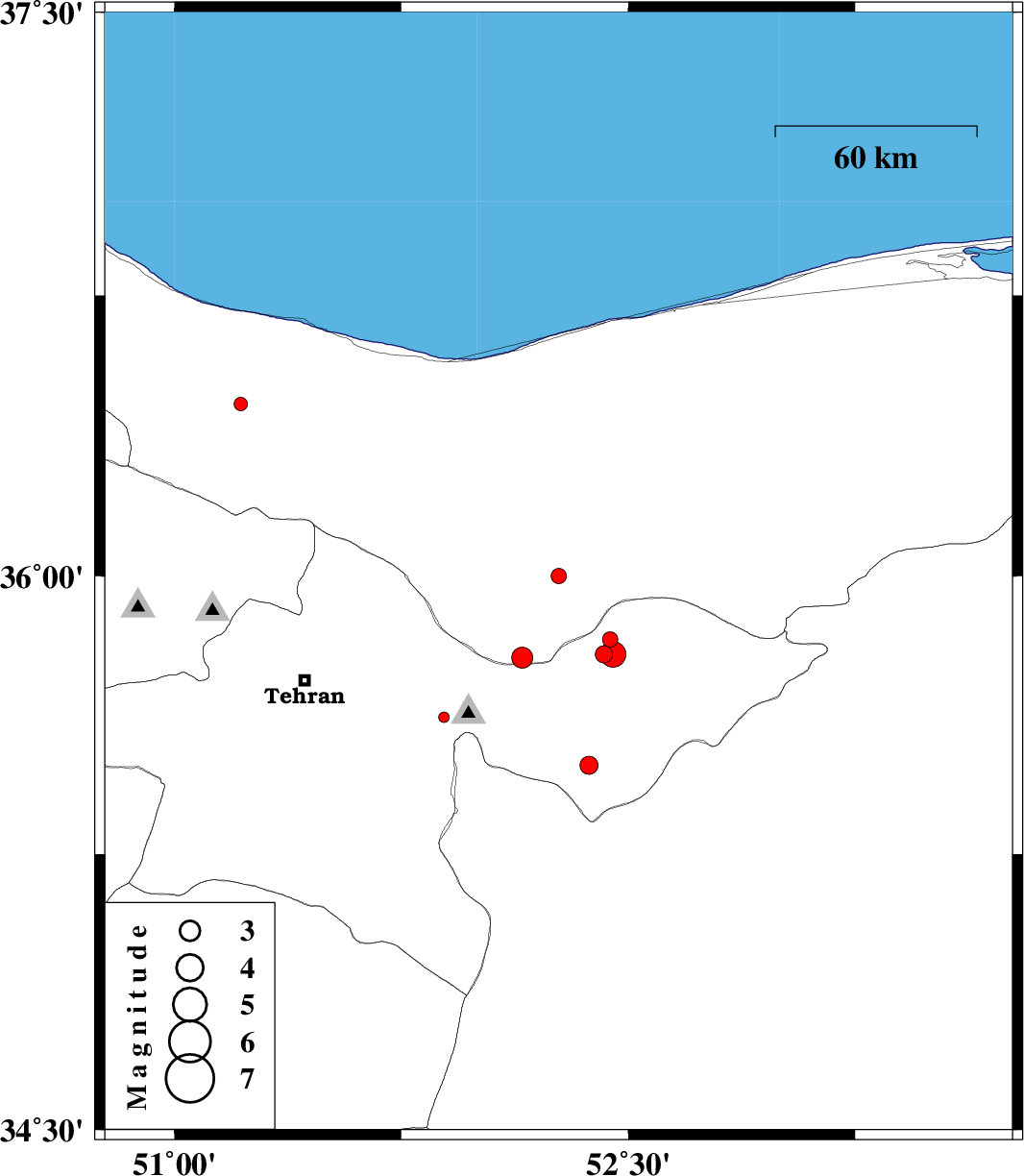 2013/06/28 08:45:05.0 13:15:05.0 3652.2711 ML:2.3 Mazandaran Province, 36 km North-East of Damavand
