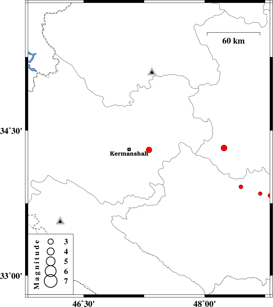 | 2013/06/23 | 12:14:52.4 | 16:44:52.4 | 33.92 | 48.45 | 30 | ML:2.3 | Lorestan Province, 15 km East of Aleshtar | ||