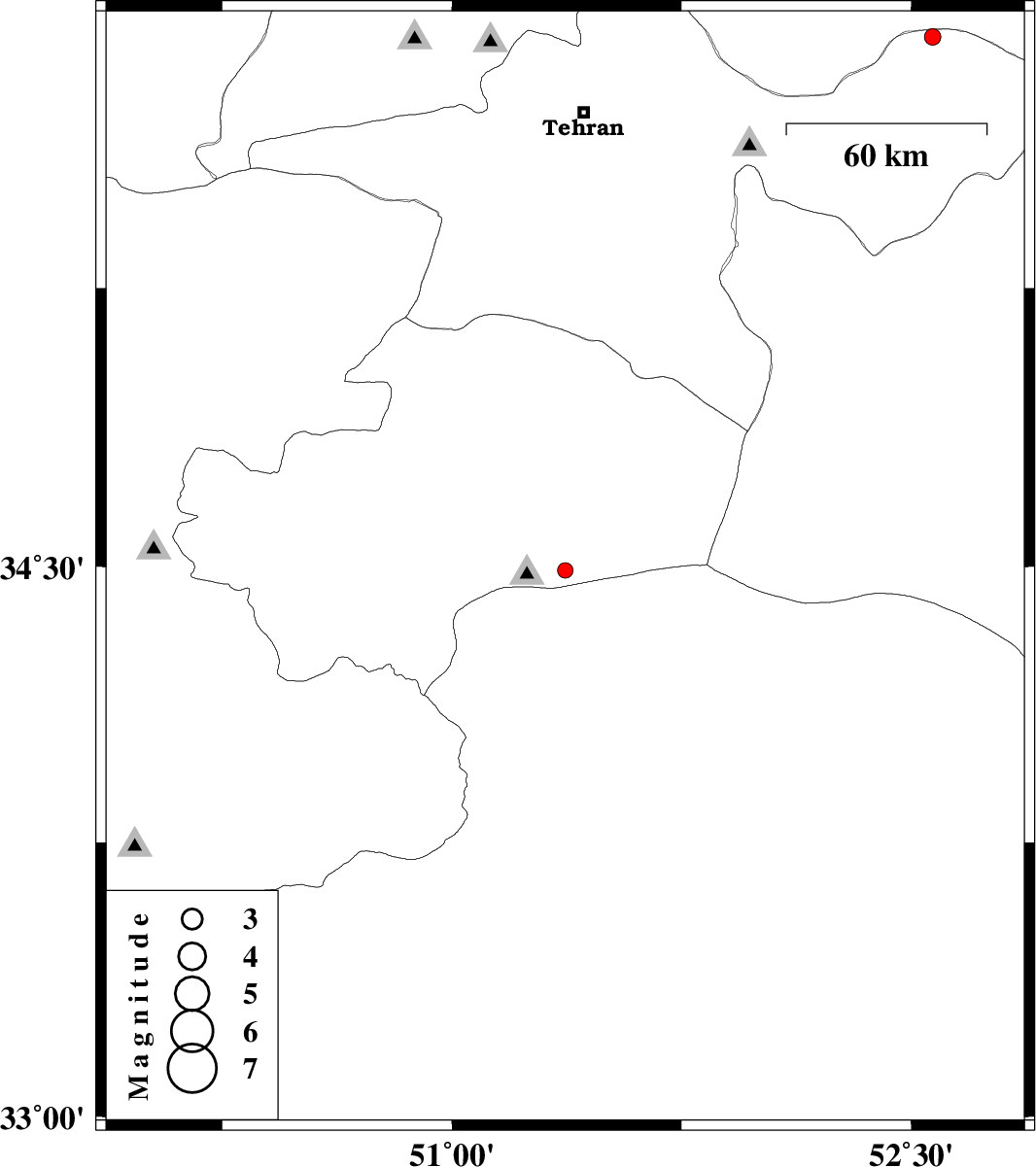 | 2013/07/04 | 16:31:25.8 | 21:01:25.8 | 35.92 | 52.57 | 14 | ML:2.4 | Tehran Province, 26 km North-West of Firuzkuh |