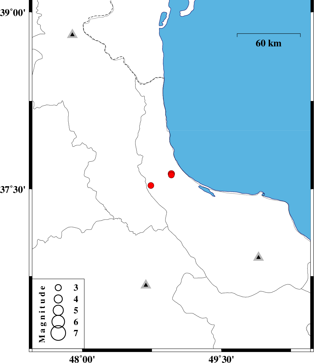 | 2013/07/20 | 12:13:43.8 | 16:43:43.8 | 37.53 | 48.74 | 18 | ML:3 | Gilan Province, 21 km East of Khalkhal |