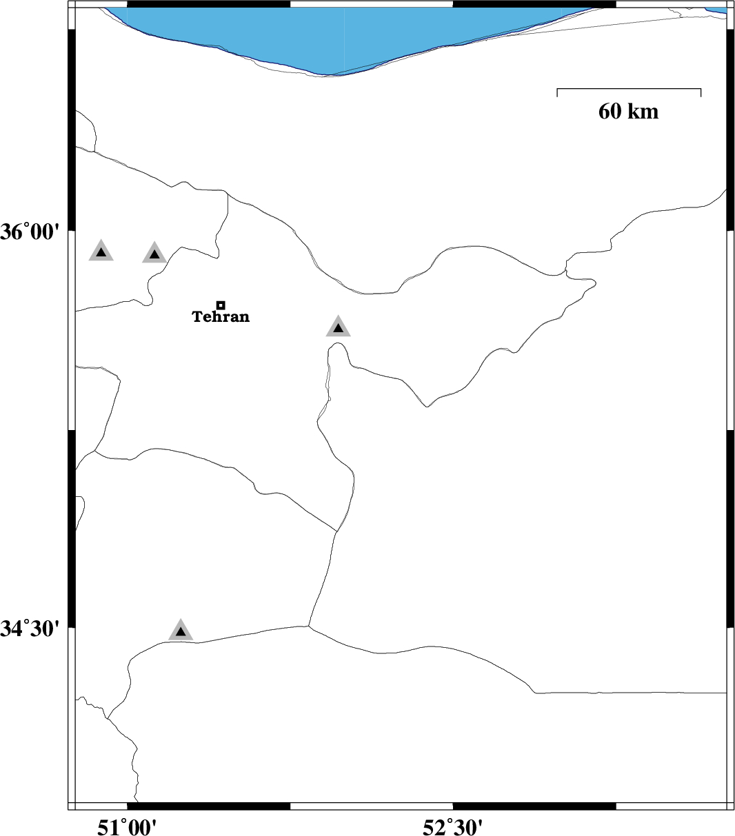 | 2013/07/23 | 06:21:50.8 | 10:51:50.8 | 35.33 | 52.26 | 27 | ML:2.4 | Semnan Province, 15 km North of Garmsar | ||