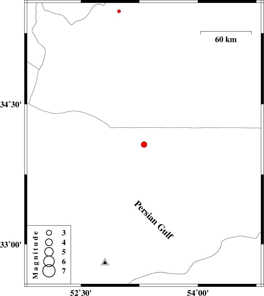 | 2013/08/13 | 04:20:38.8 | 08:50:38.8 | 34.07 | 53.31 | 14 | ML:3.4 | Esfahan Province, 136 km North-East of Nain |