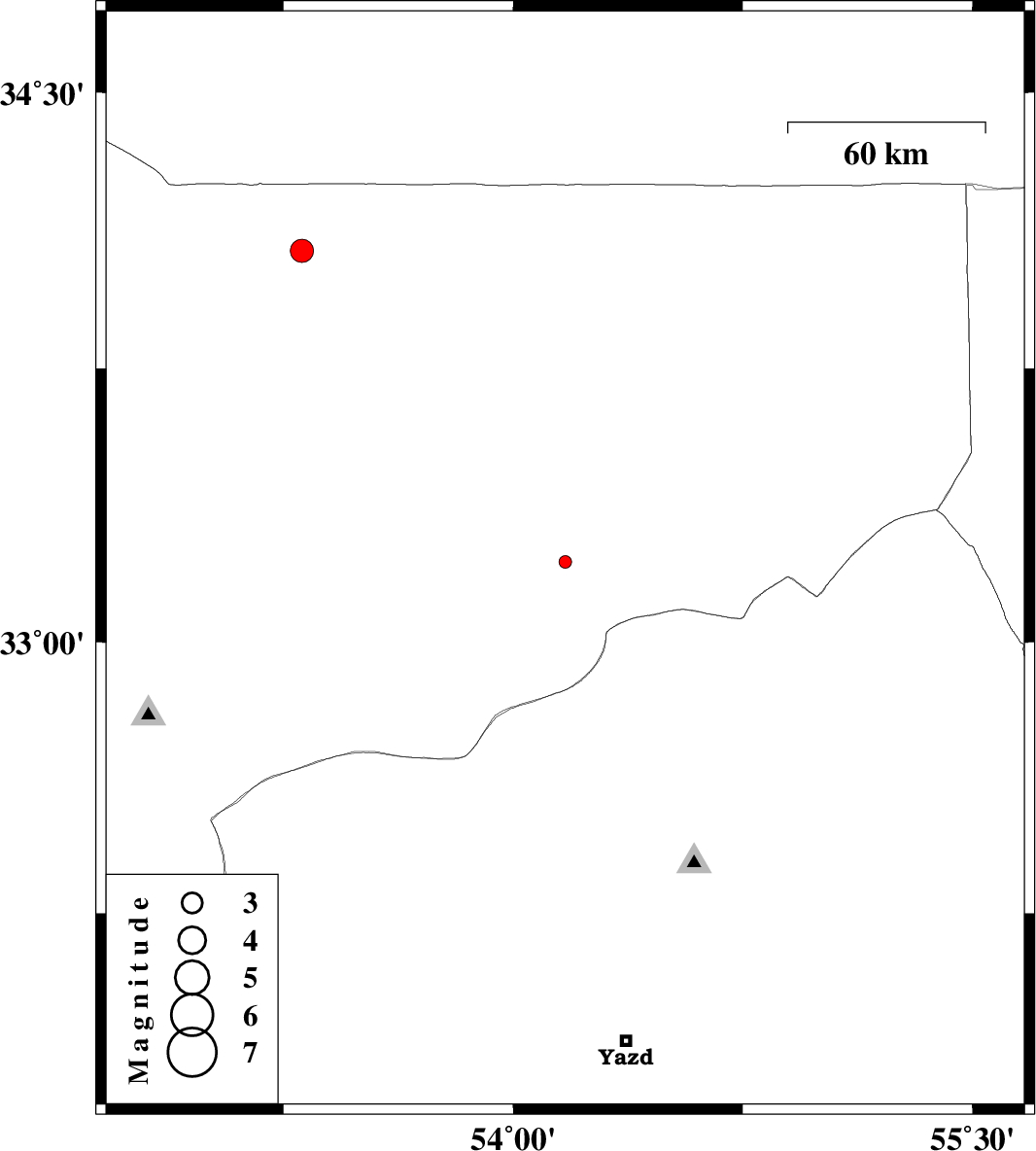 | 2013/08/19 | 04:45:06.7 | 09:15:06.7 | 33.22 | 54.17 | 6 | ML:1.8 | Esfahan Province, 101 km North-East of Ardakan | ||