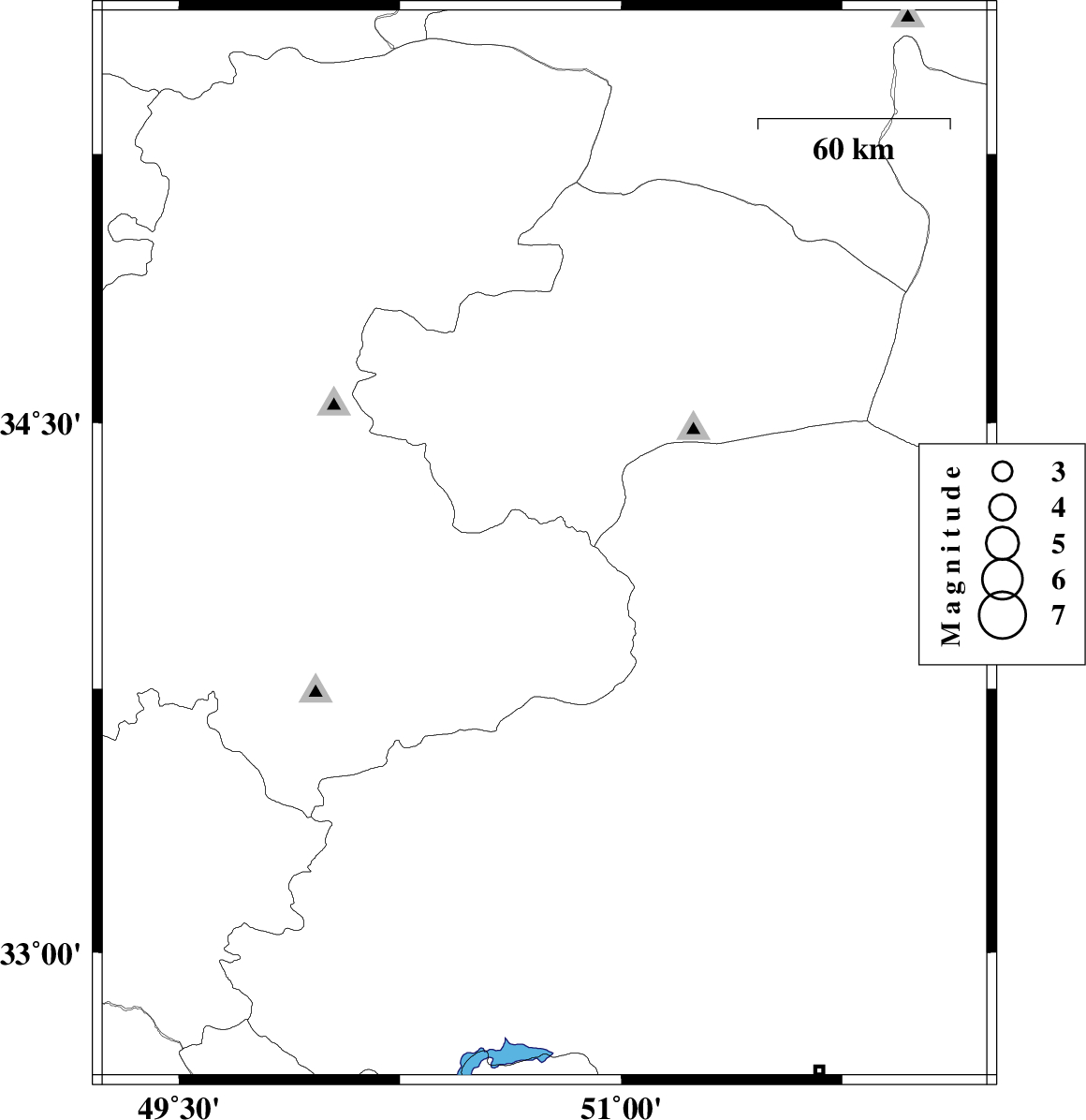 | 2013/09/03 | 15:15:45.2 | 19:45:45.2 | 34.54 | 50.45 | 14 | ML:1.7 | Qom Province, 41 km East of Ashtiyan |