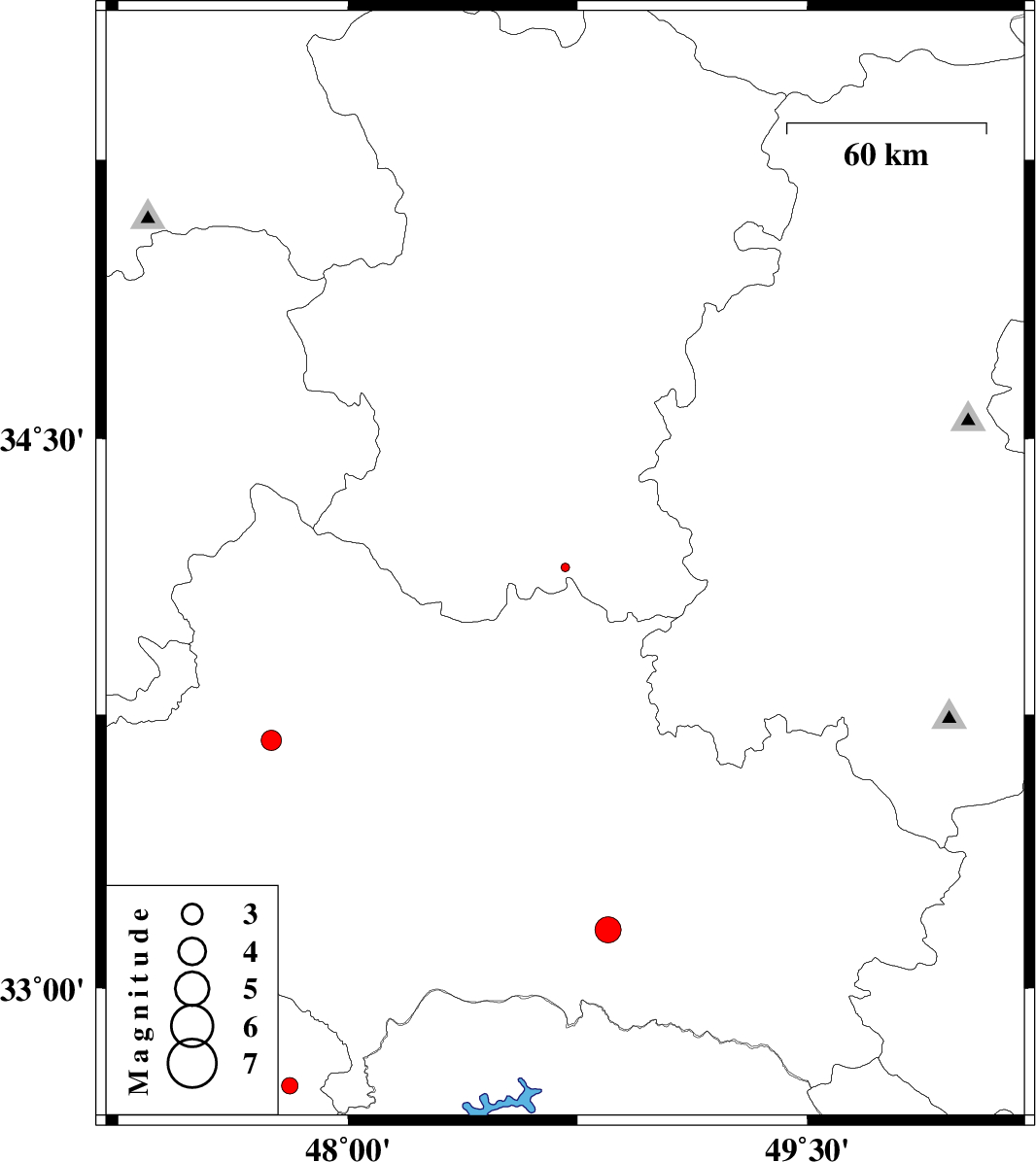 | 2013/09/10 | 15:29:45.1 | 19:59:45.1 | 33.68 | 47.75 | 18 | ML:3 | Lorestan Province, 21 km North-East of Kuhdasht | ||