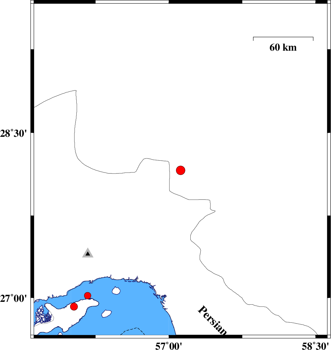 | 2013/09/17 | 16:19:41.3 | 20:49:41.3 | 26.92 | 56.03 | 15 | ML:3.4 | Persian Gulf, 24 km West of Qeshm |