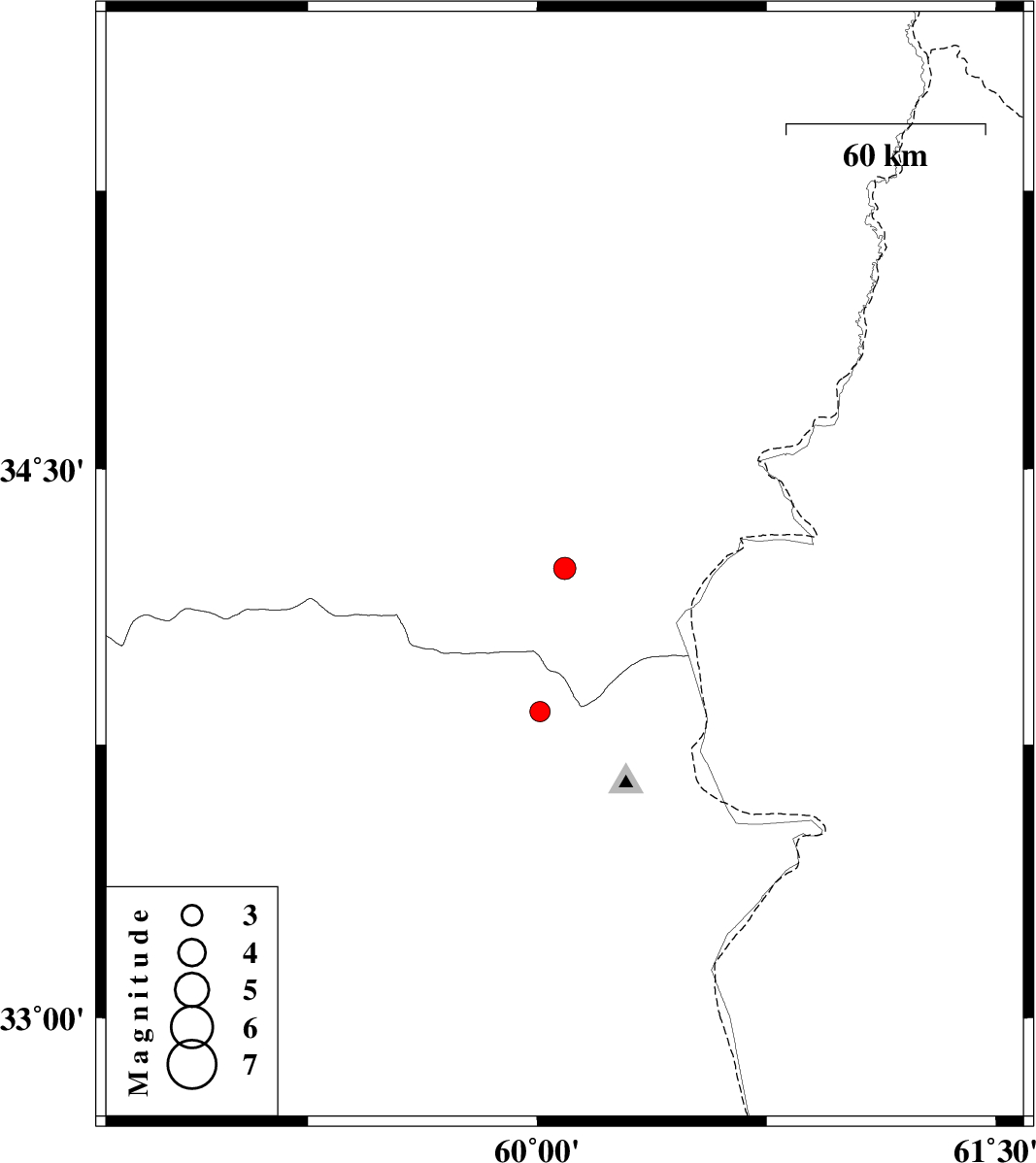 | 2013/09/21 | 07:53:47.1 | 12:23:47.1 | 34.23 | 60.09 | 28 | ML:3.2 | Khorasan(center) Province, 38 km South of Khaf | ||