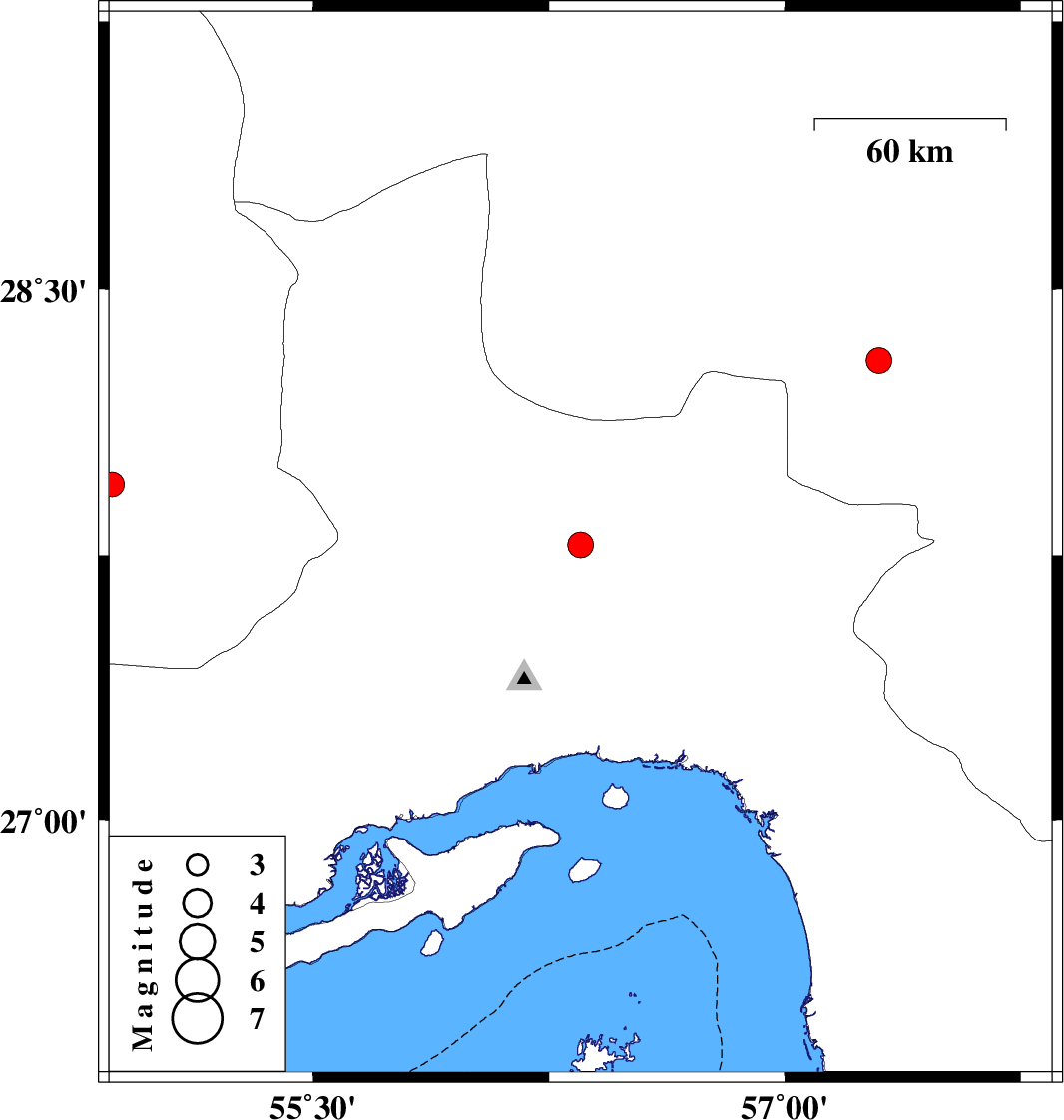 | 2013/10/12 | 08:18:18.1 | 11:48:18.1 | 27.95 | 54.86 | 14 | ML:3.5 | Fars Province, 59 km North-East of Lar |