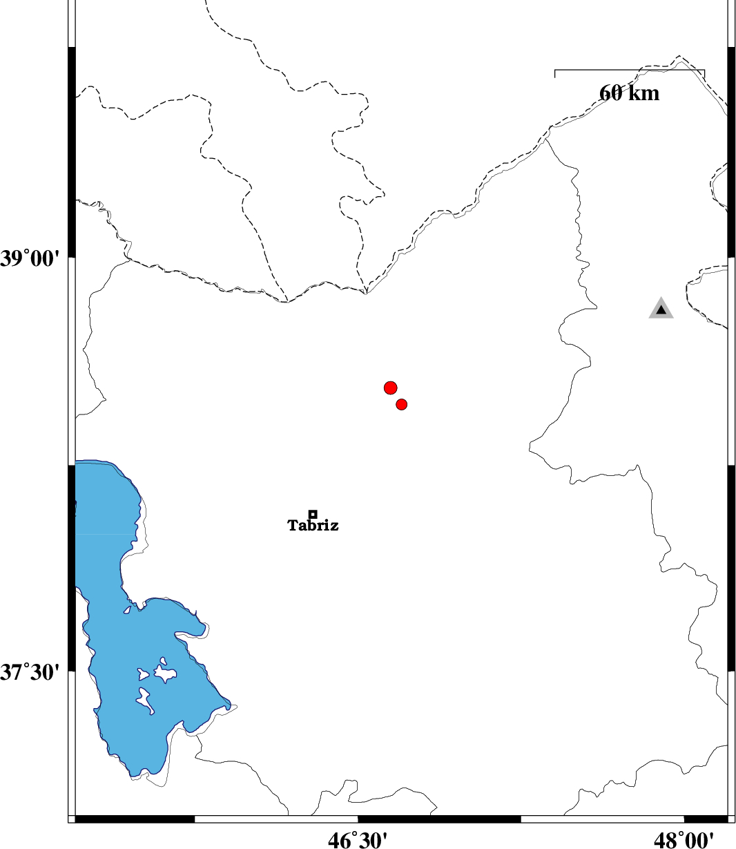 | 2013/10/09 | 18:14:34.6 | 21:44:34.6 | 38.53 | 46.65 | 18 | ML:2.7 | Azarbaijan Sharghi Province, 38 km West of Ahar |