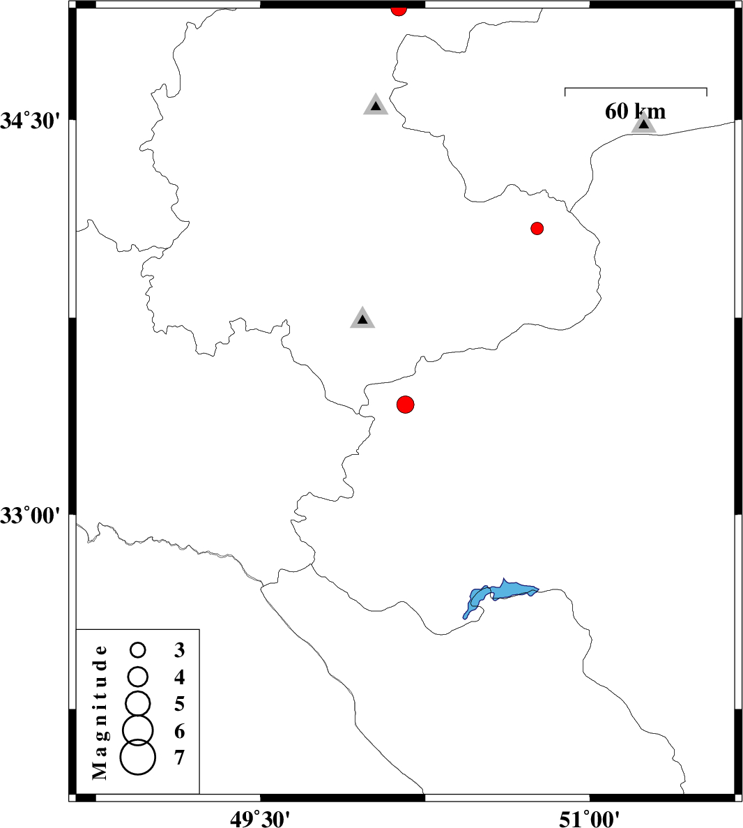 | 2013/11/02 | 11:20:01.0 | 14:50:01.0 | 33.42 | 50.16 | 14 | ML:3.5 | Esfahan Province, 13 km West of Golpayegan | ||