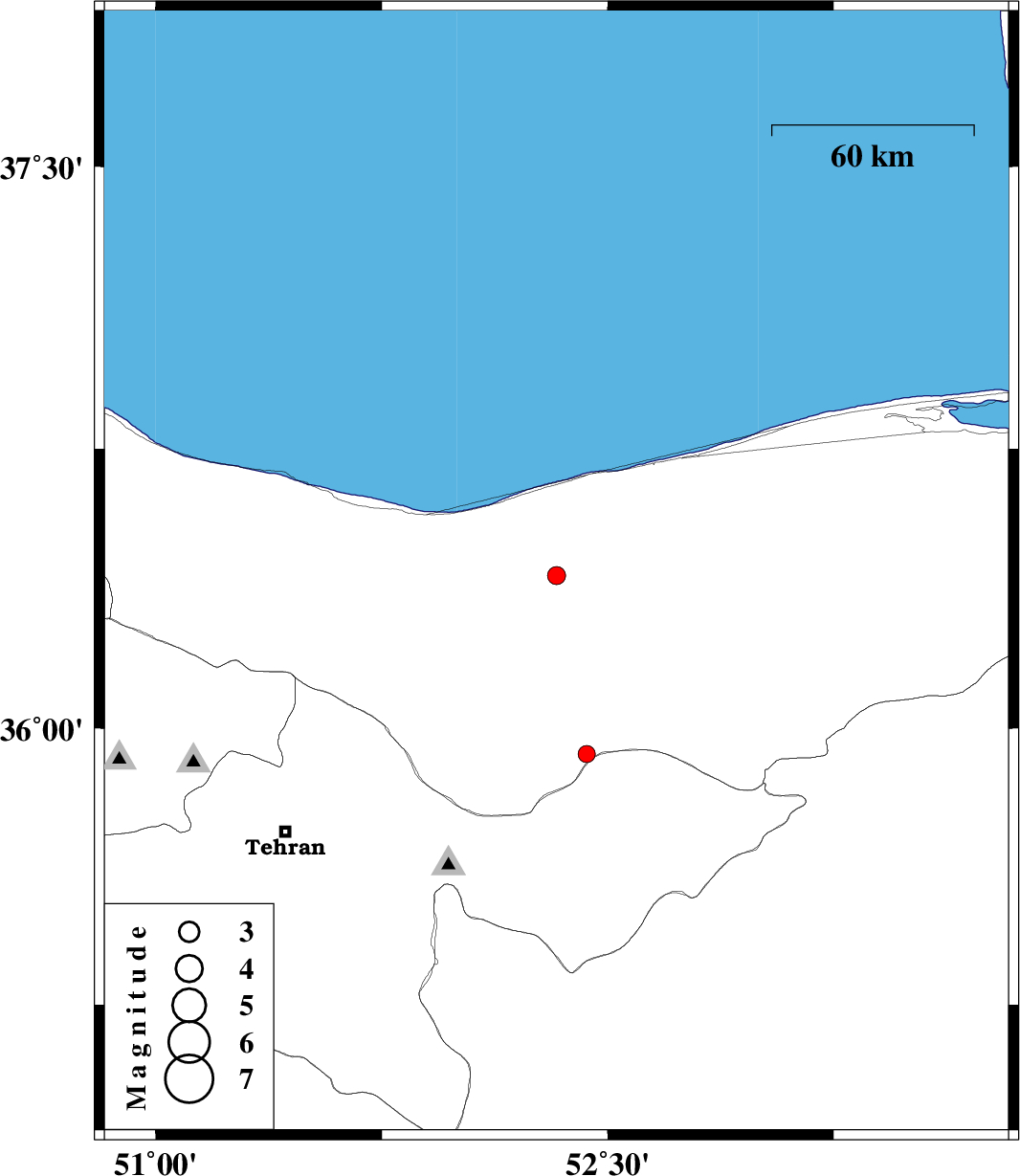 | 2013/11/03 | 09:36:52.3 | 13:06:52.3 | 35.93 | 52.43 | 14 | ML:2.5 | Mazandaran Province, 36 km North-West of Firuzkuh |
