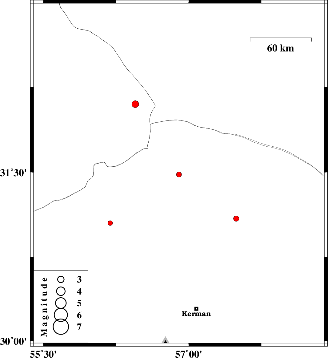 | 2013/11/27 | 09:05:05.7 | 12:35:05.7 | 31.09 | 57.49 | 14 | ML:2.5 | Kerman Province, 67 km South-East of Ravar | ||