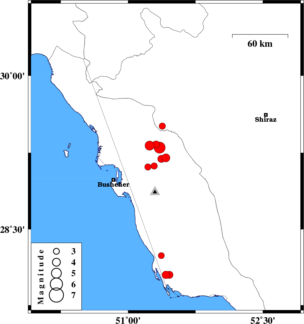 2013/11/28 13:51:35.5 17:21:35.5 29.351.3515 ML:5.6 Bushehr Province, 15 km East of Borazjan