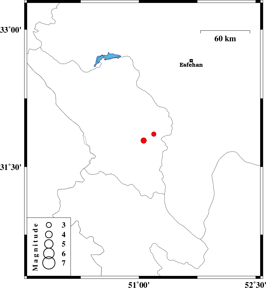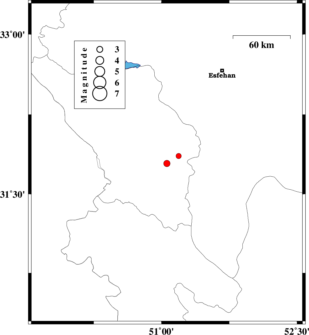 | 2013/12/01 | 05:29:22.9 | 08:59:22.9 | 31.86 | 51.19 | 18 | ML:2.7 | Chaharmahal Bakhtiari Province, 15 km South-West of Borujen |