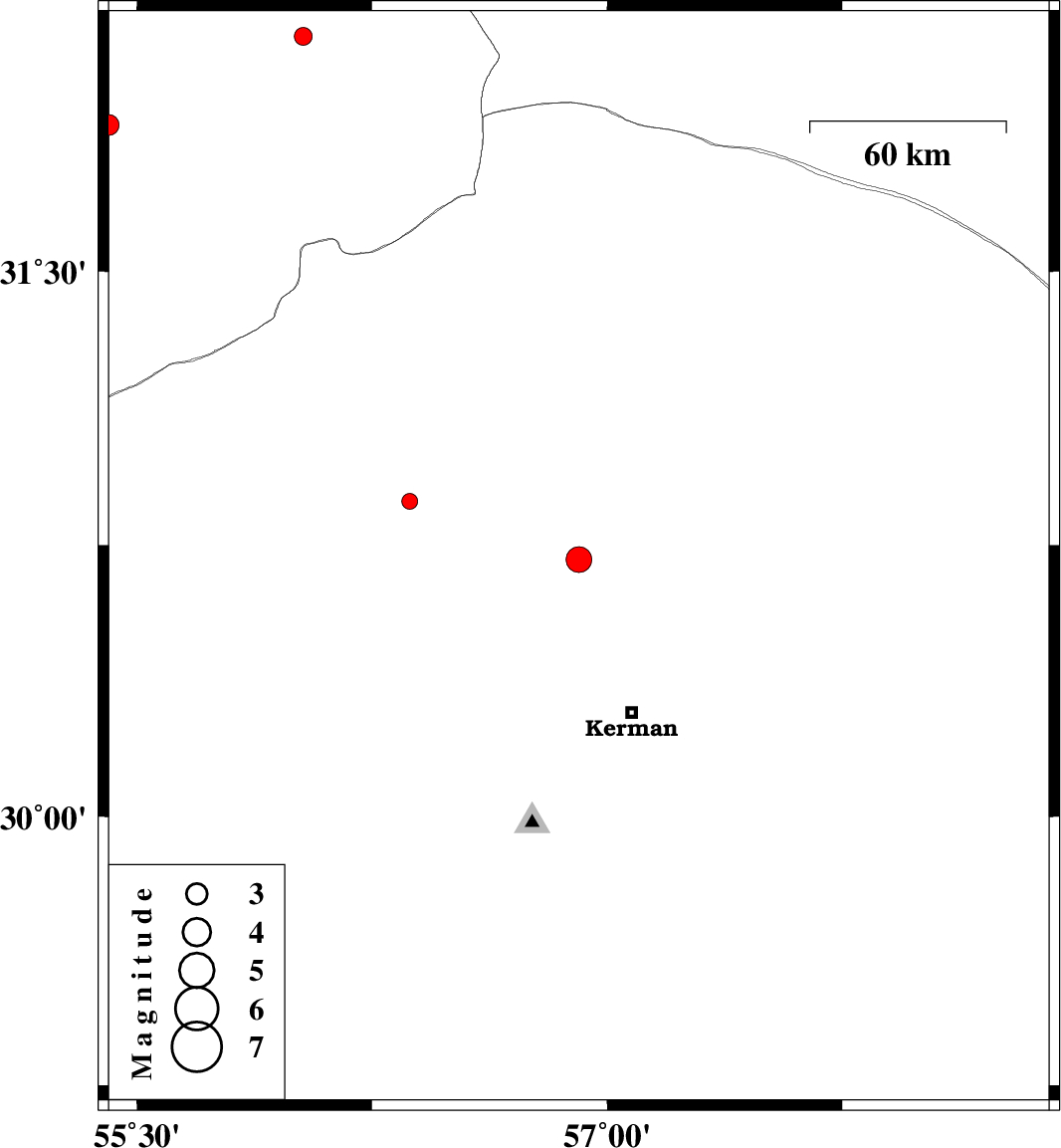 | 2013/12/12 | 11:41:05.3 | 15:11:05.3 | 30.71 | 56.91 | 17 | ML:3.7 | Kerman Province, 35 km South-East of Zarand | ||