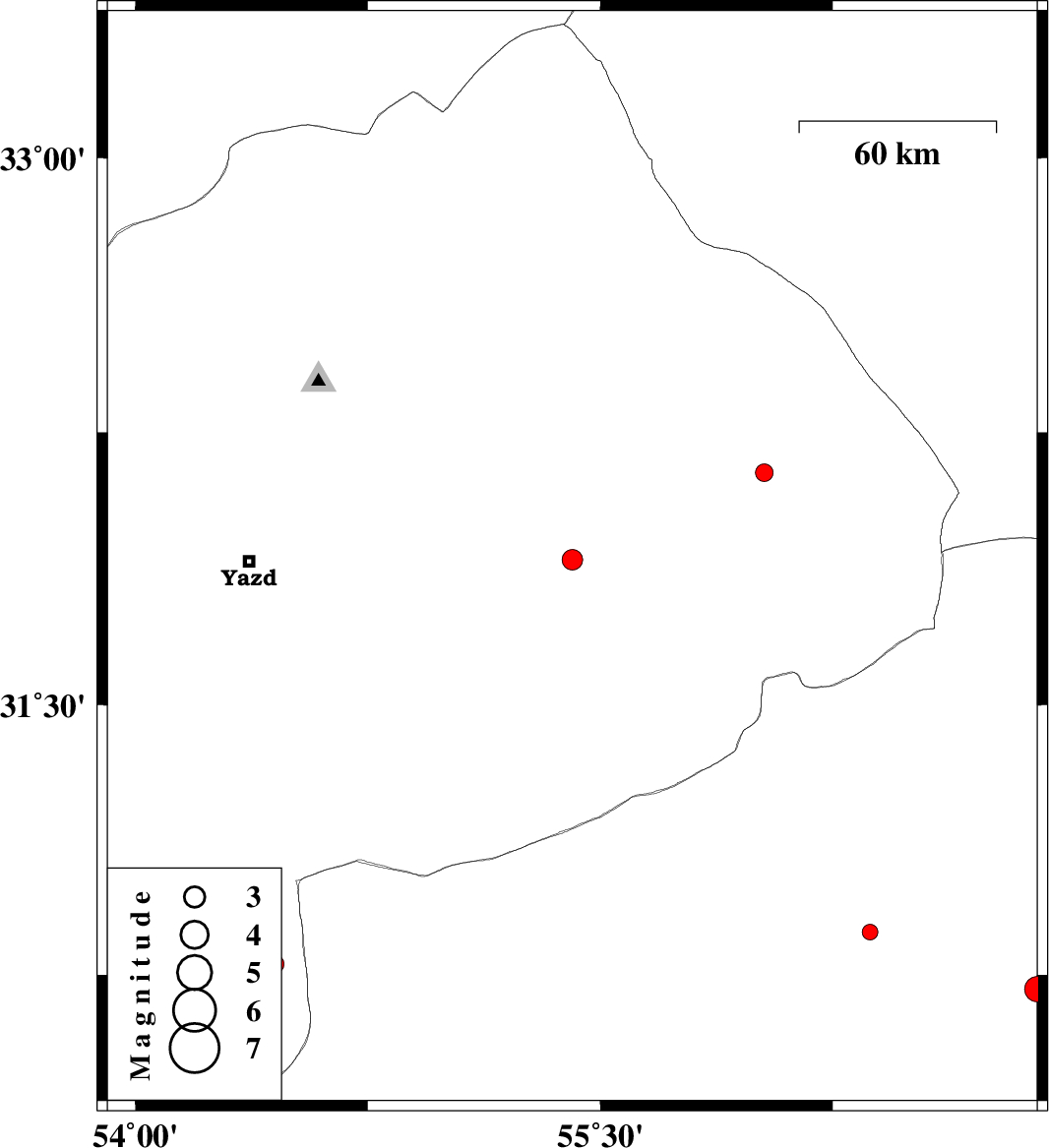 | 2013/12/10 | 15:23:57.3 | 18:53:57.3 | 32.14 | 56.03 | 14 | ML:2.5 | Yazd Province, 85 km North-East of Bafq | ||