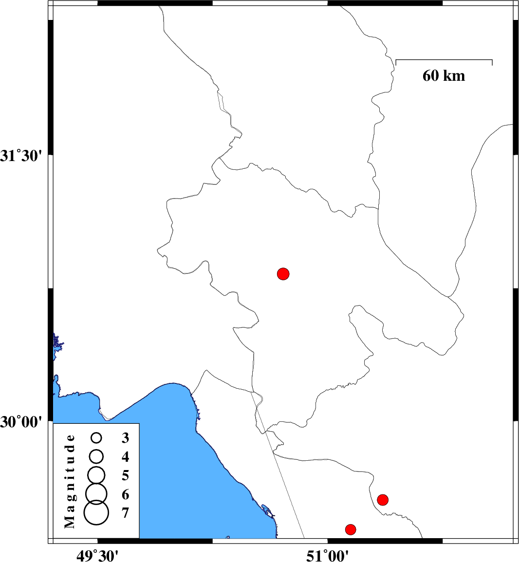 | 2013/12/08 | 02:56:00.1 | 06:26:00.1 | 29.38 | 51.15 | 4 | ML:3.1 | Bushehr Province, 14 km North of Borazjan |