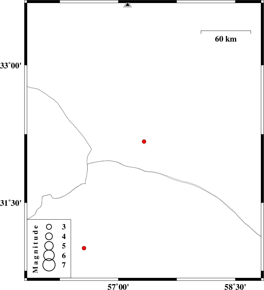 | 2013/12/25 | 01:36:58.1 | 05:06:58.1 | 32.17 | 57.33 | 14 | ML:2.2 | Yazd Province, 112 km North-East of Ravar | ||