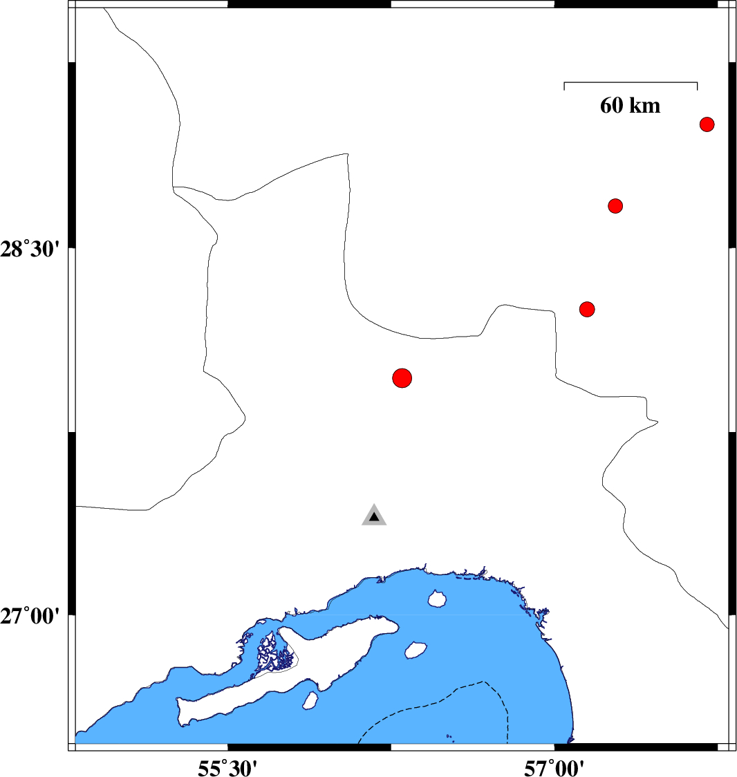 | 2013/12/28 | 04:04:08.2 | 07:34:08.2 | 29 | 57.7 | 14 | ML:2.9 | Kerman Province, 37 km North of Jiroft |