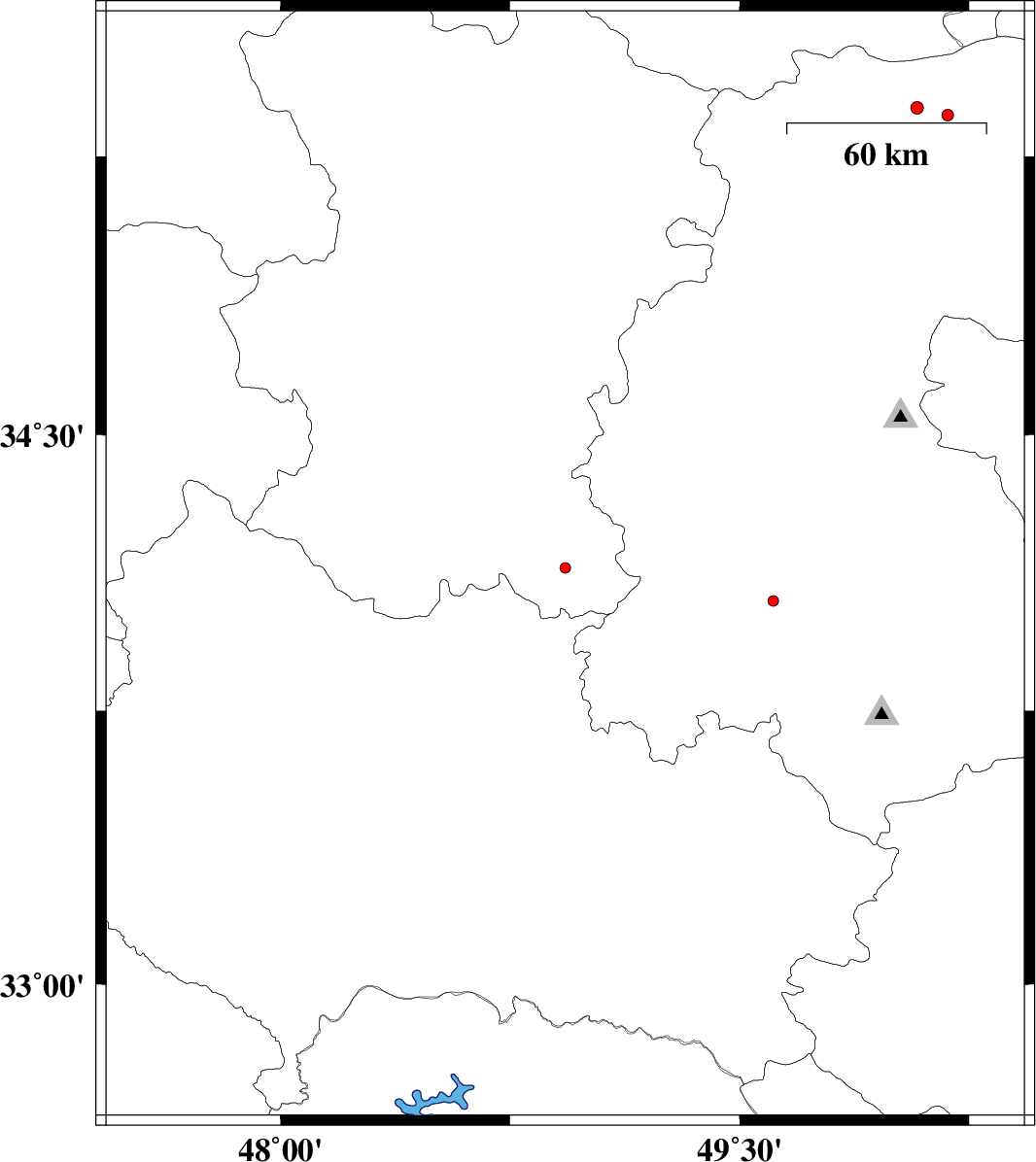 | 2014/01/09 | 09:35:38.8 | 13:05:38.8 | 34.14 | 48.93 | 15 | ML:1.6 | Hamedan Province, 20 km South-East of Malayer | ||