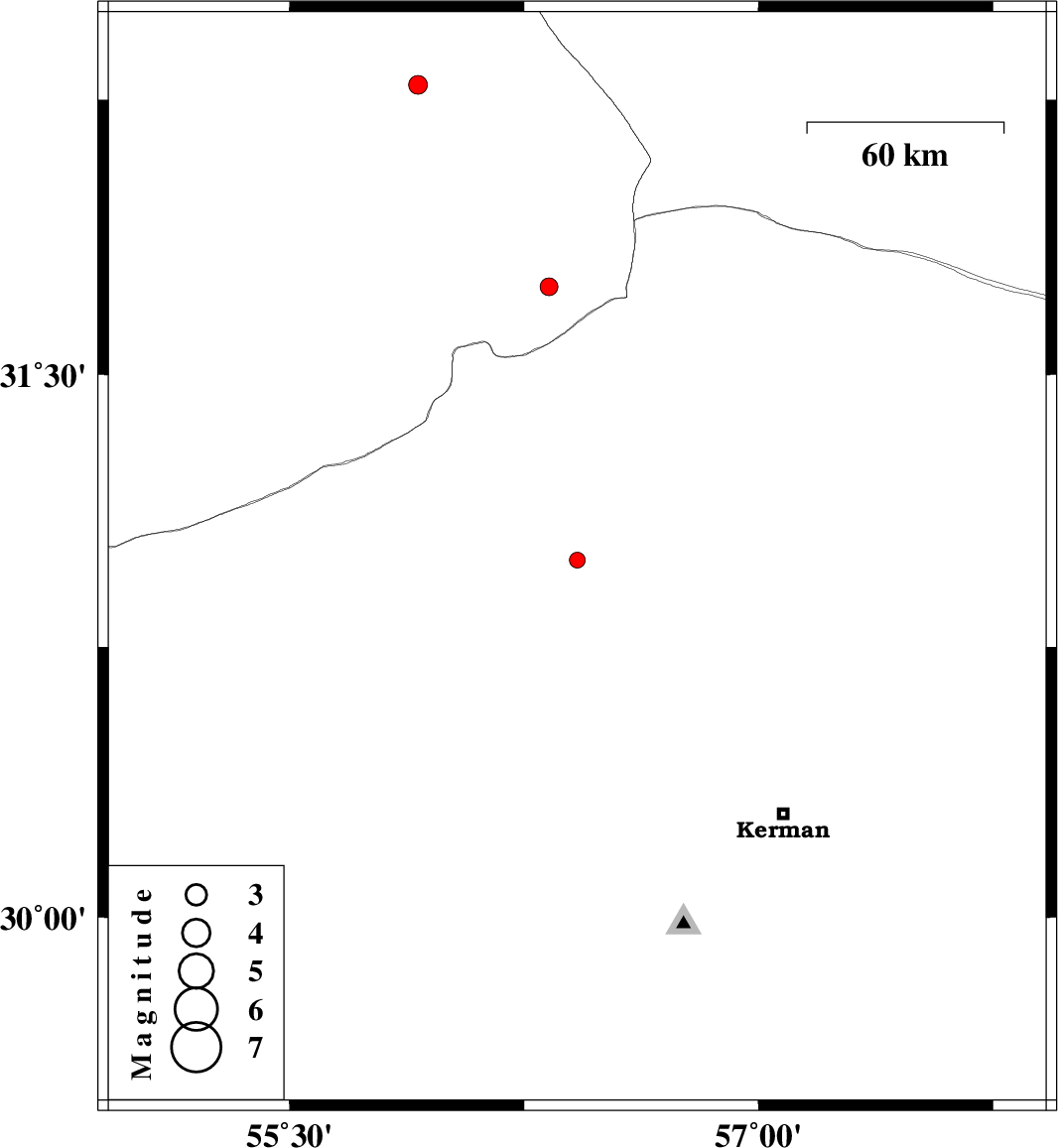 2014/01/30 13:23:54.4 16:53:54.4 30.9956.4214 ML:2.3 Kerman Province, 25 km North-West of Zarand
