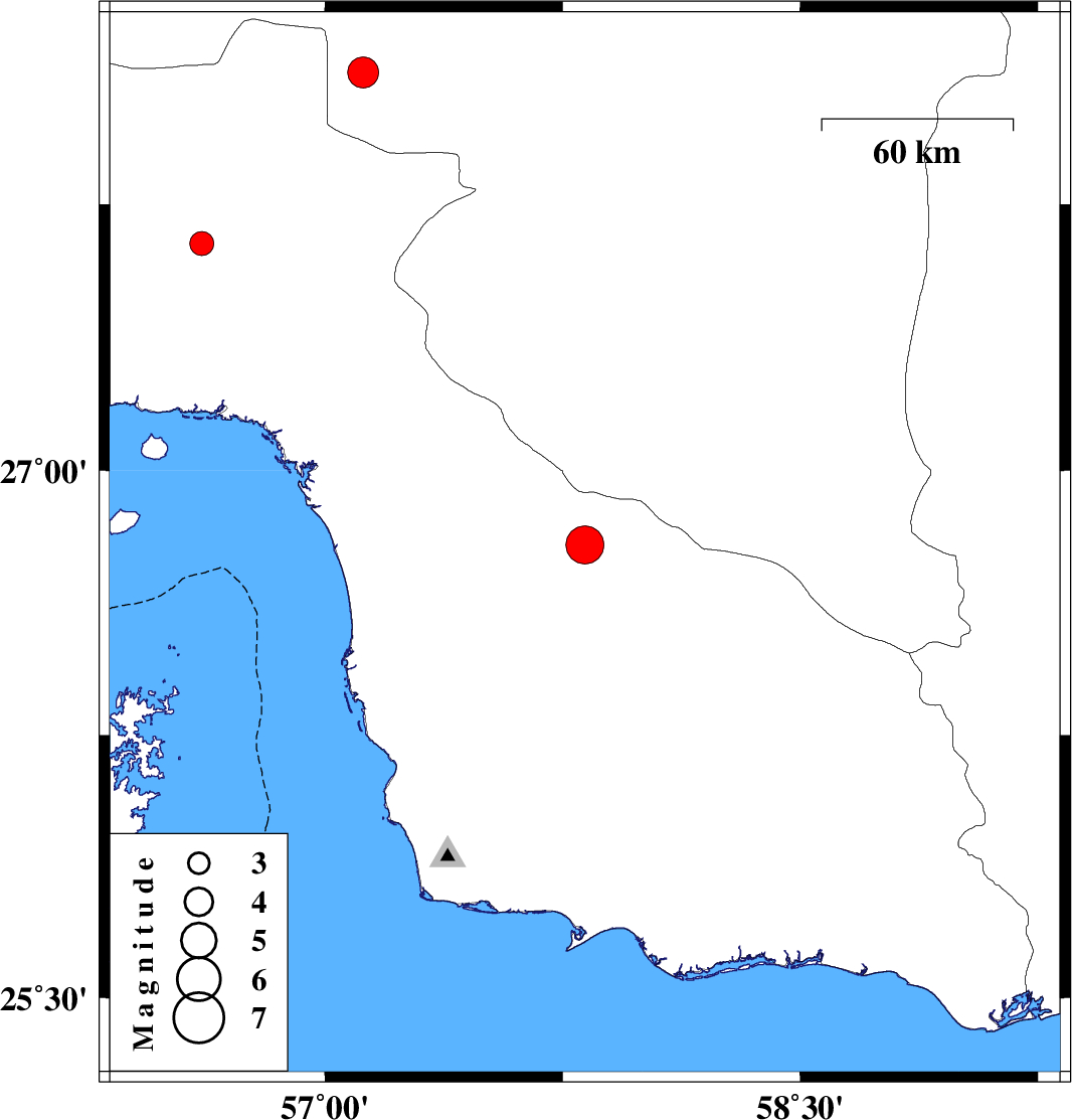 | 2014/02/02 | 18:15:42.9 | 21:45:42.9 | 28.12 | 57.12 | 14 | ML:4.4 | Kerman Province, 60 km North-West of Kahnuj | ||