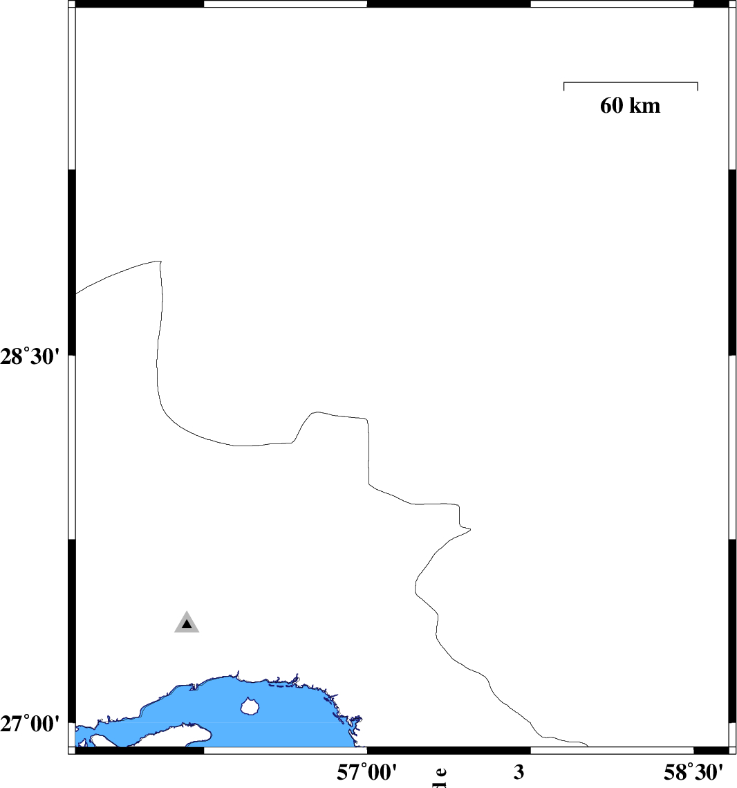 | 2014/02/02 | 18:15:42.9 | 21:45:42.9 | 28.12 | 57.12 | 14 | ML:4.4 | Kerman Province, 60 km North-West of Kahnuj |