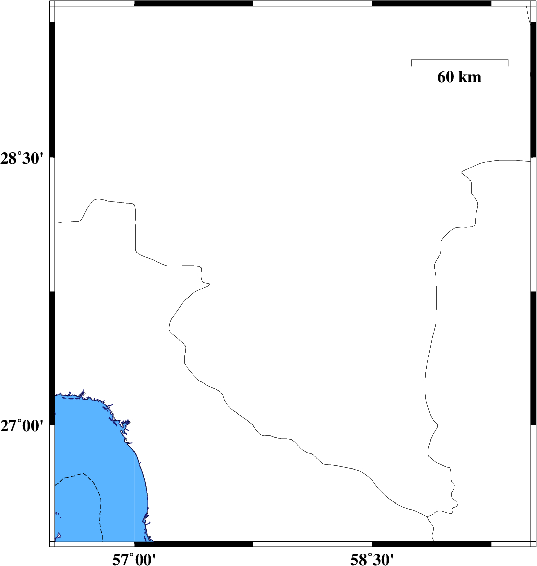 | 2014/02/20 | 10:06:46.1 | 13:36:46.1 | 28.6 | 57.39 | 18 | ML:3 | Kerman Province, 35 km West of Jiroft |