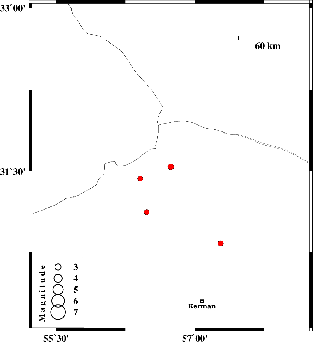 | 2014/03/13 | 03:47:38.7 | 07:17:38.7 | 31.43 | 56.41 | 17 | ML:2.6 | Kerman Province, 43 km North-West of Ravar | ||