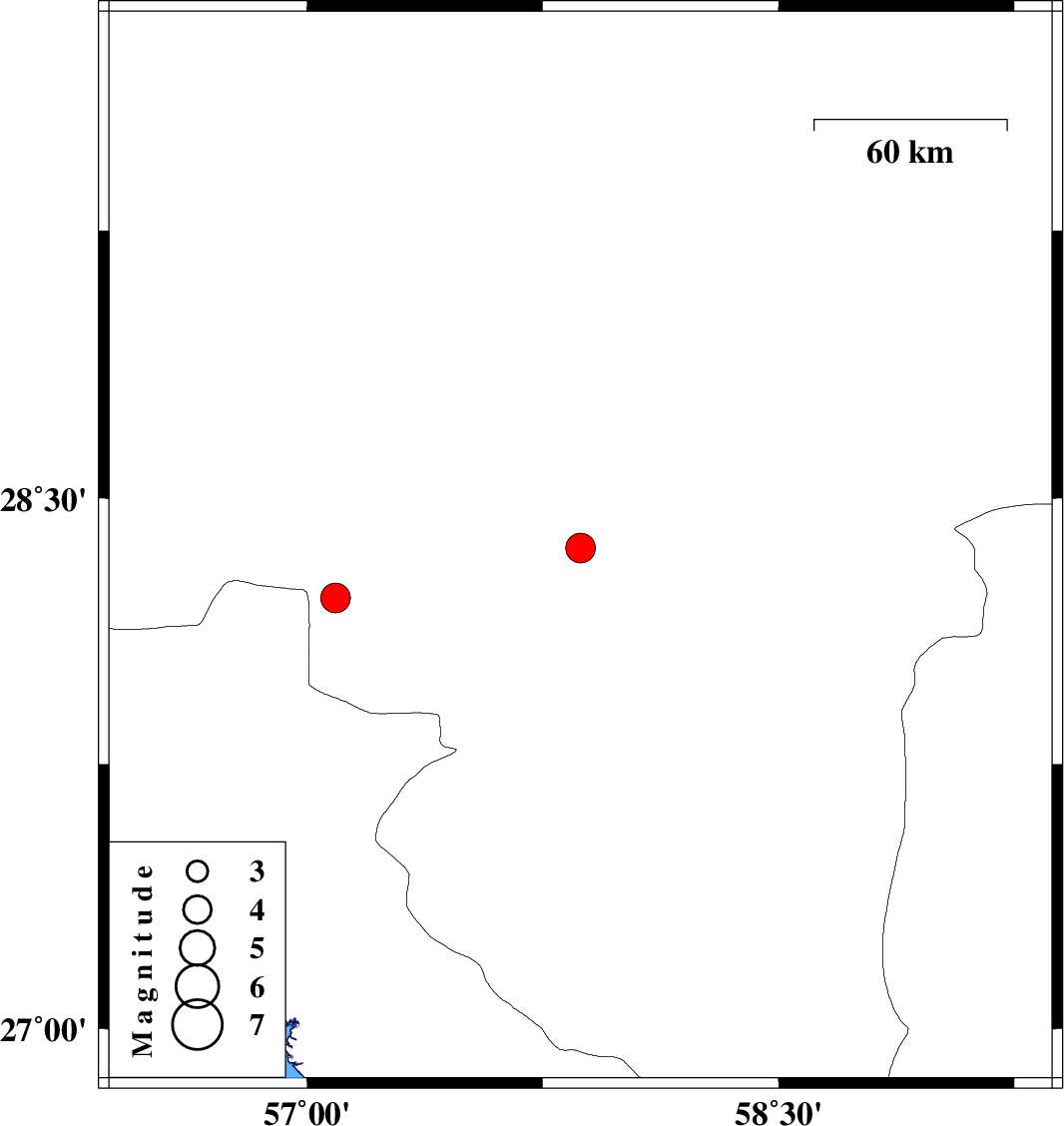 | 2014/03/12 | 20:22:00.5 | 23:52:00.5 | 28.22 | 57.09 | 14 | ML:4.3 | Kerman Province, 67 km North-West of Kahnuj |