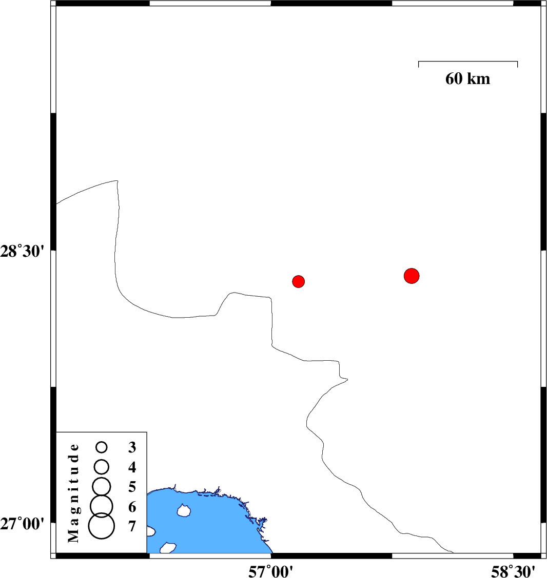 | 2014/03/16 | 14:34:43.9 | 18:04:43.9 | 28.36 | 57.87 | 15 | ML:4.2 | Kerman Province, 37 km South-East of Jiroft |