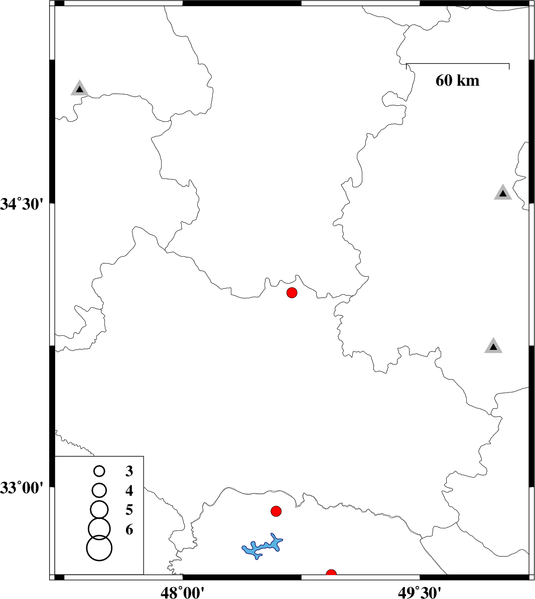 | 2014/04/14 | 04:11:58.8 | 08:41:58.8 | 32.53 | 48.94 | 14 | ML:2.9 | Khoozestan Province, 22 km North-West of Lali | ||