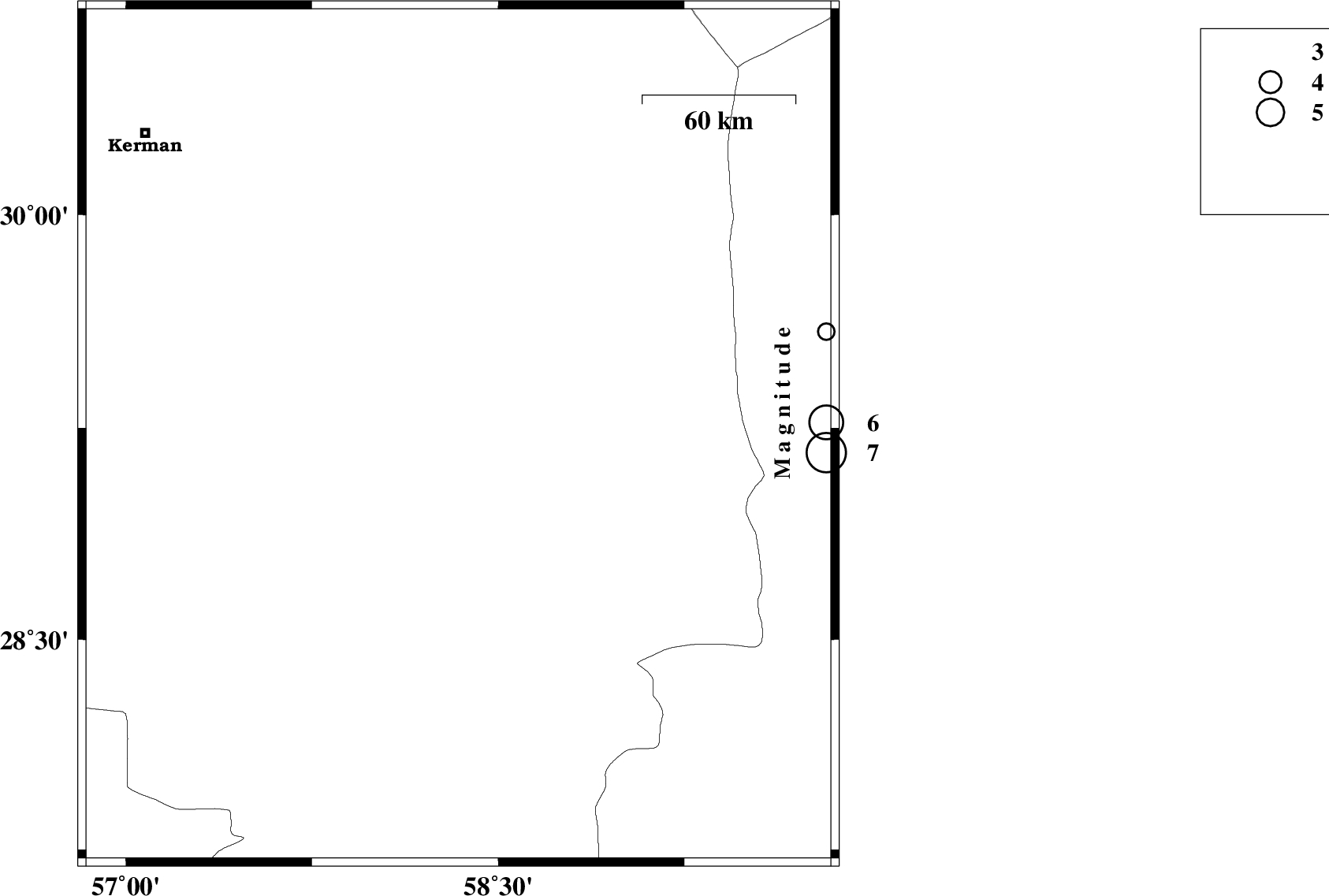 | 2014/04/23 | 20:00:49.3 | 00:30:49.3 | 29.22 | 58.34 | 14 | ML:3.2 | Kerman Province, 13 km North of Bam | ||
