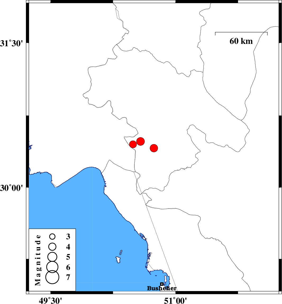 | 2014/04/24 | 07:44:29.3 | 12:14:29.3 | 30.45 | 50.49 | 18 | ML:3.9 | Kohkiluieh va boyerahmad Province, 28 km South-East of Behbahan | ||