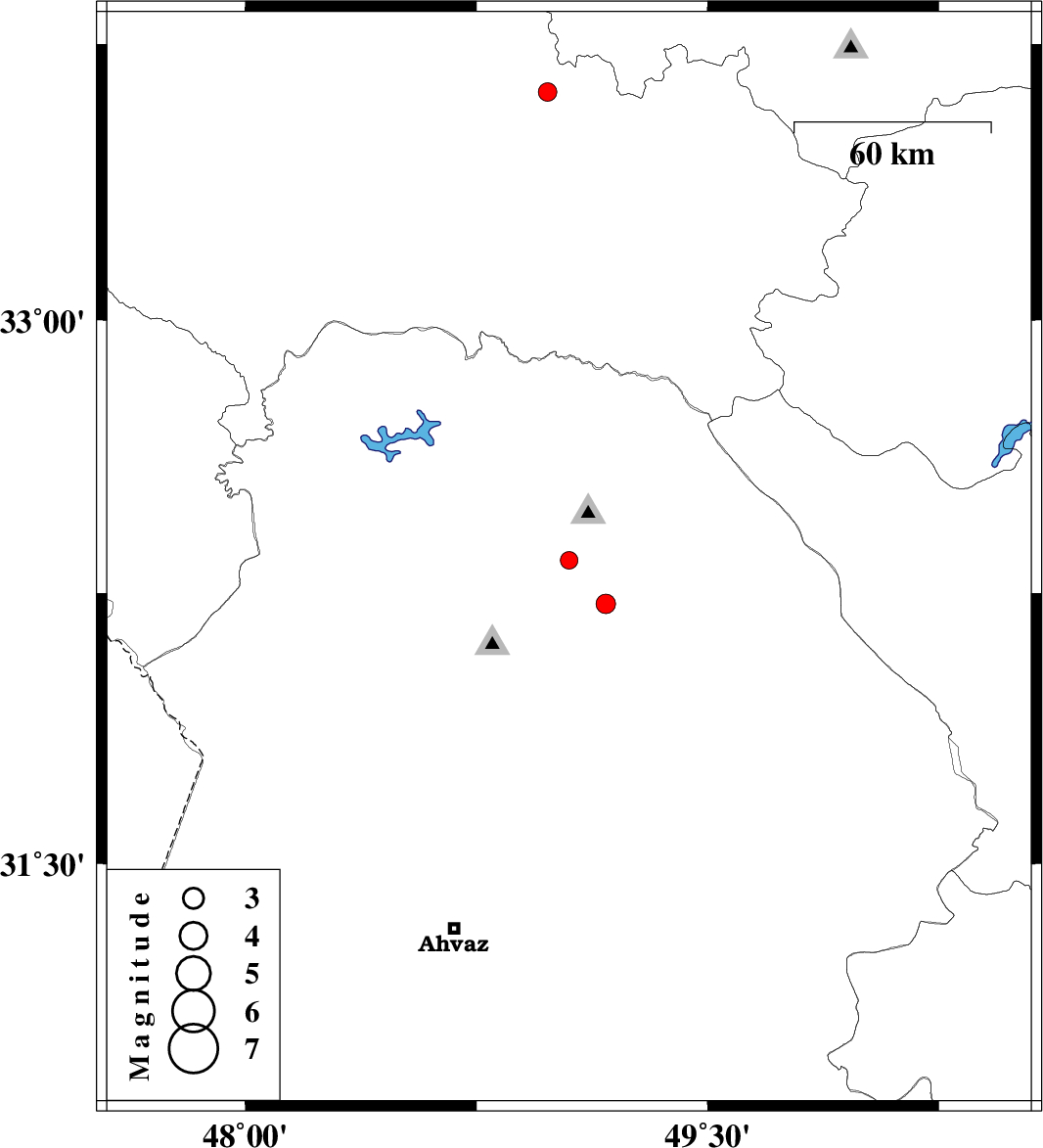 | 2014/04/27 | 00:55:41.3 | 05:25:41.3 | 32.22 | 49.17 | 14 | ML:2.8 | Khoozestan Province, 20 km South of Lali | ||