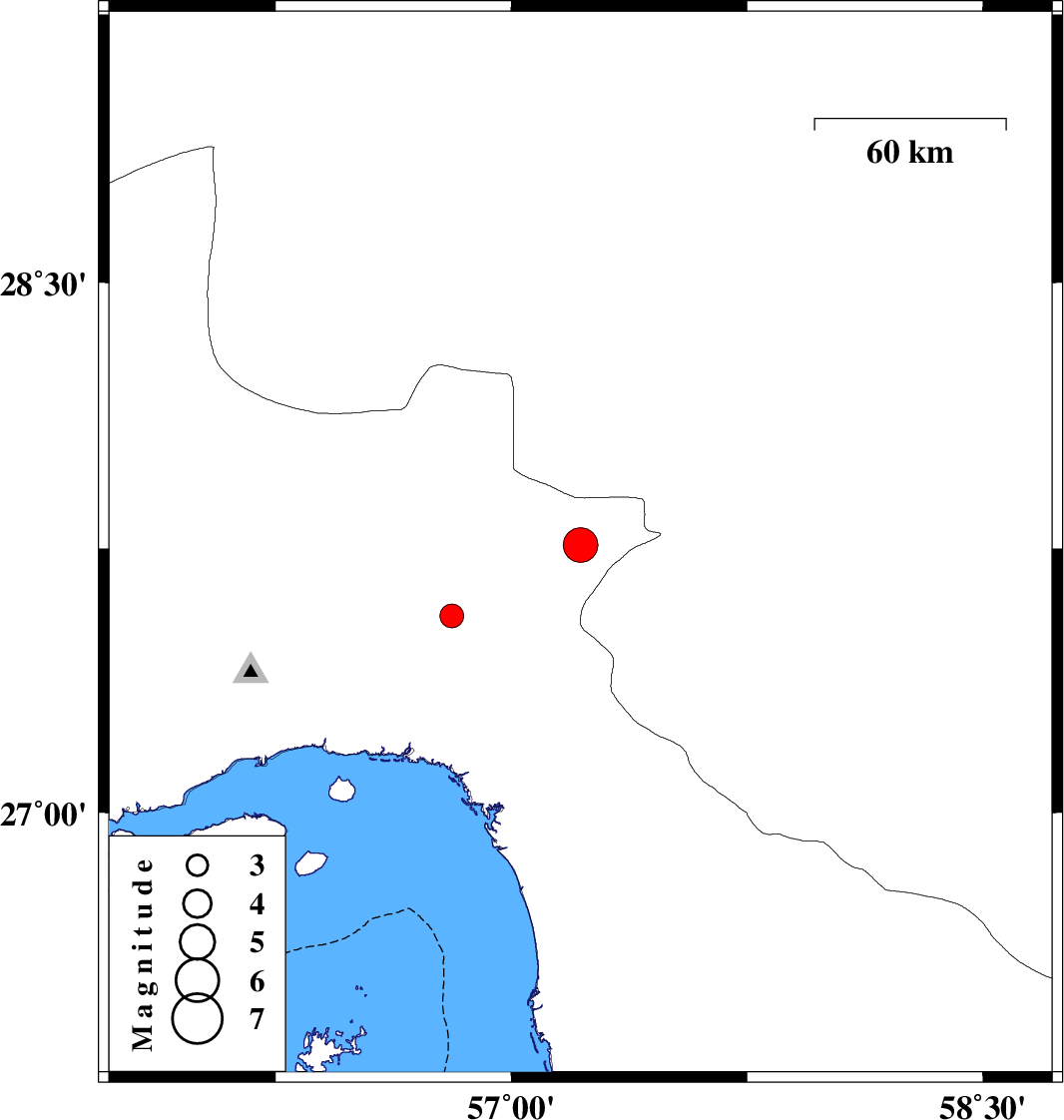 | 2014/05/27 | 05:44:29.2 | 10:14:29.2 | 26.46 | 55.78 | 15 | Mb:4.9 | Persian Gulf, 73 km South-West of Qeshm |