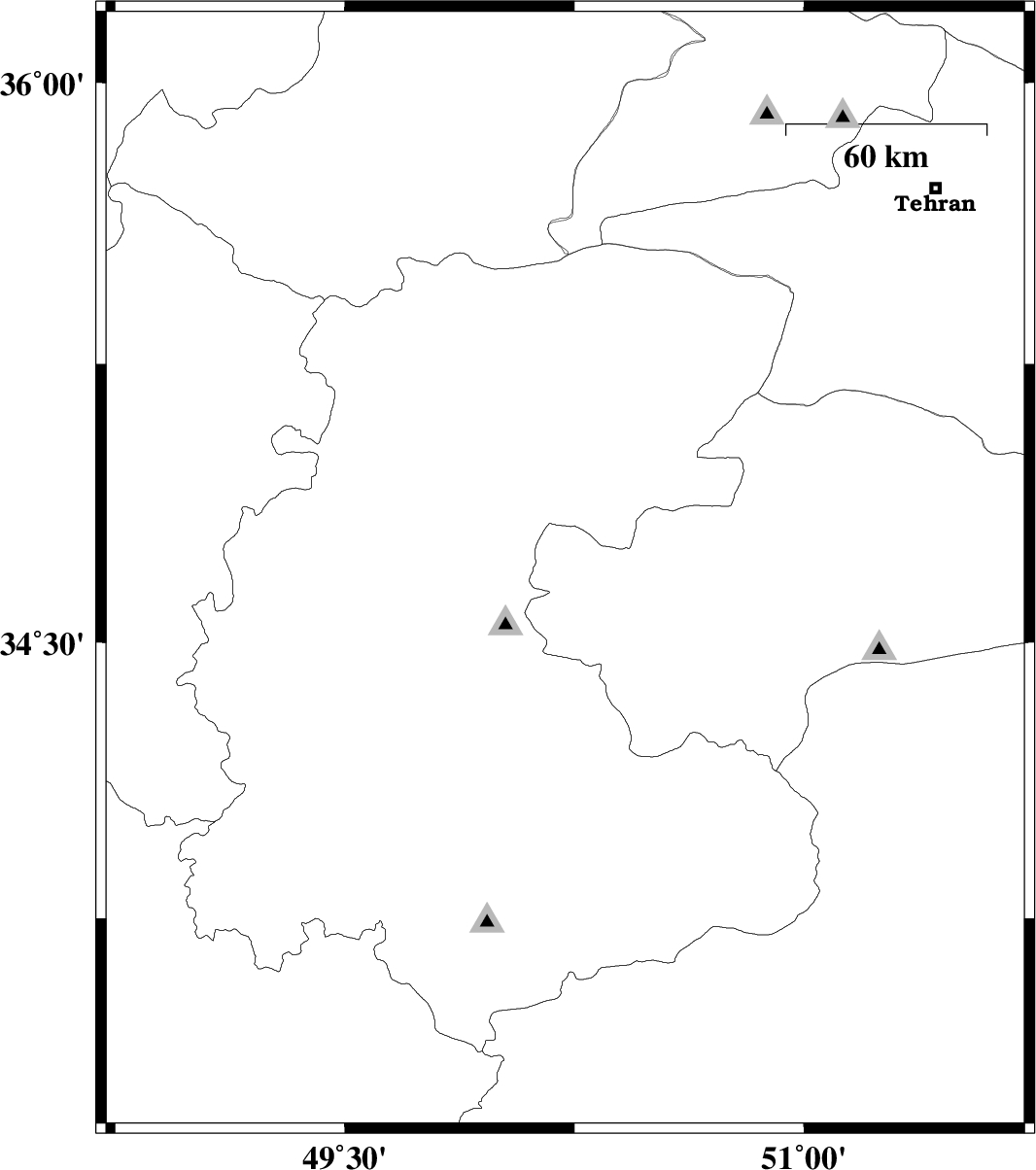 | 2014/05/18 | 17:29:30.4 | 21:59:30.4 | 34.5 | 50.8 | 34 | ML:2.7 | Qom Province, 18 km South of Qom | ||