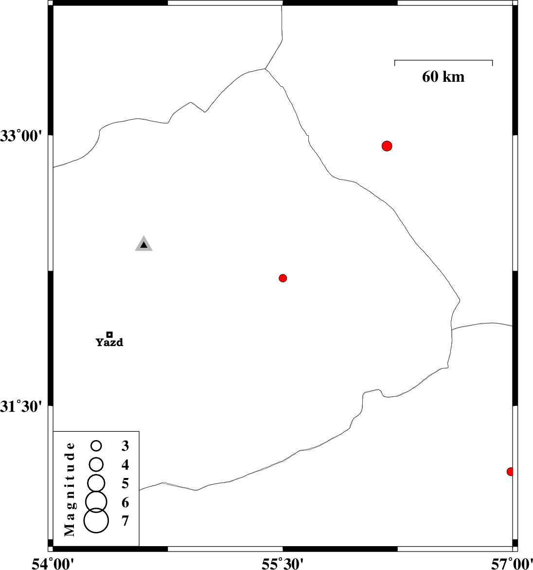 | 2014/06/09 | 23:00:31.4 | 03:30:31.4 | 32.94 | 56.18 | 37 | ML:3 | Yazd Province, 101 km South-West of Tabas |