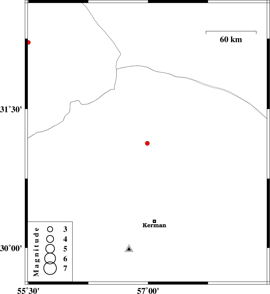 | 2014/06/14 | 22:01:05.2 | 02:31:05.2 | 31.13 | 56.99 | 14 | ML:2.4 | Kerman Province, 22 km South-East of Ravar | ||