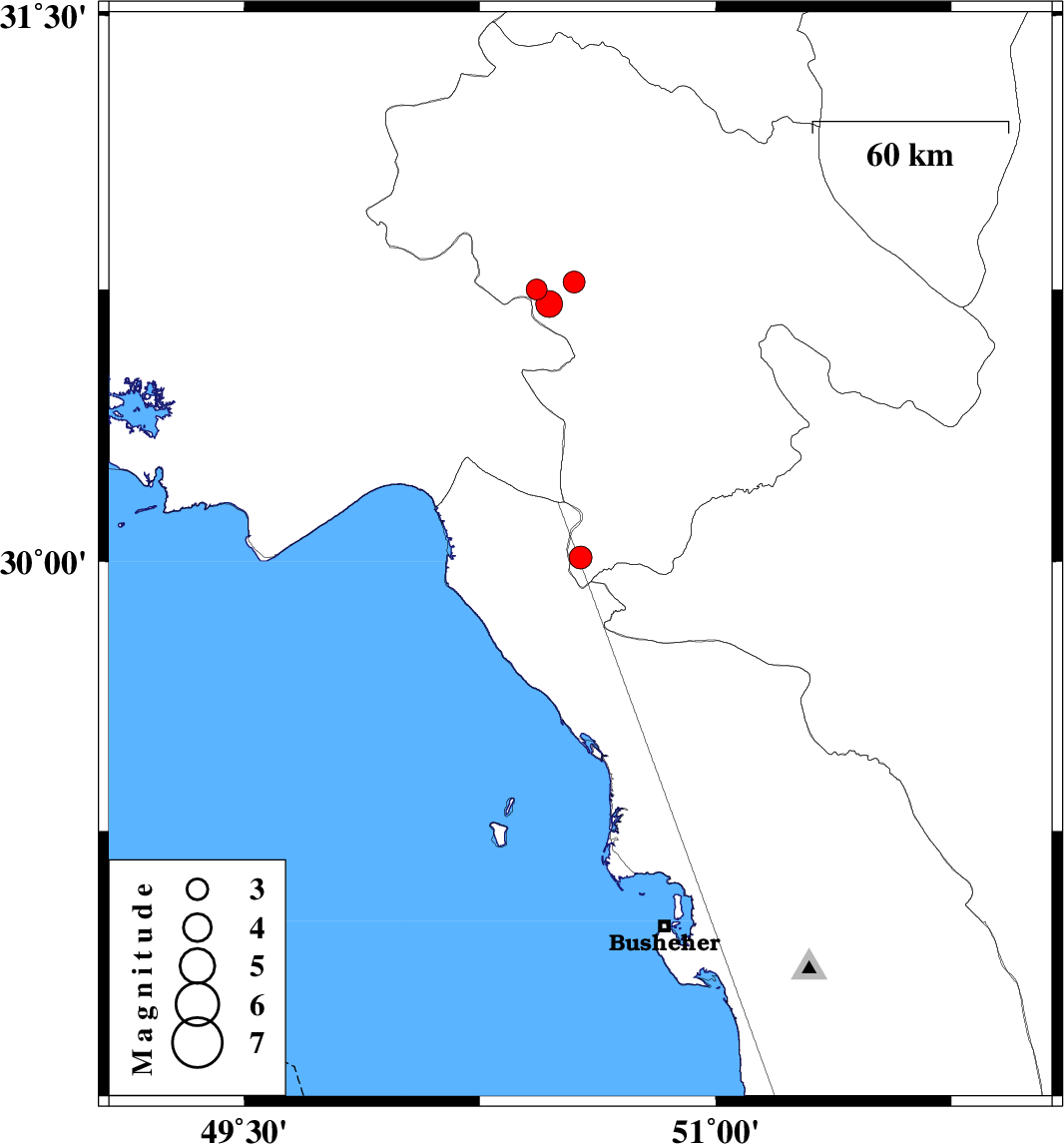 | 2014/06/17 | 06:38:41.5 | 11:08:41.5 | 30.01 | 50.57 | 42 | ML:3.3 | Kohkiluieh va boyerahmad Province, 48 km North of Bandar-e genaveh | ||