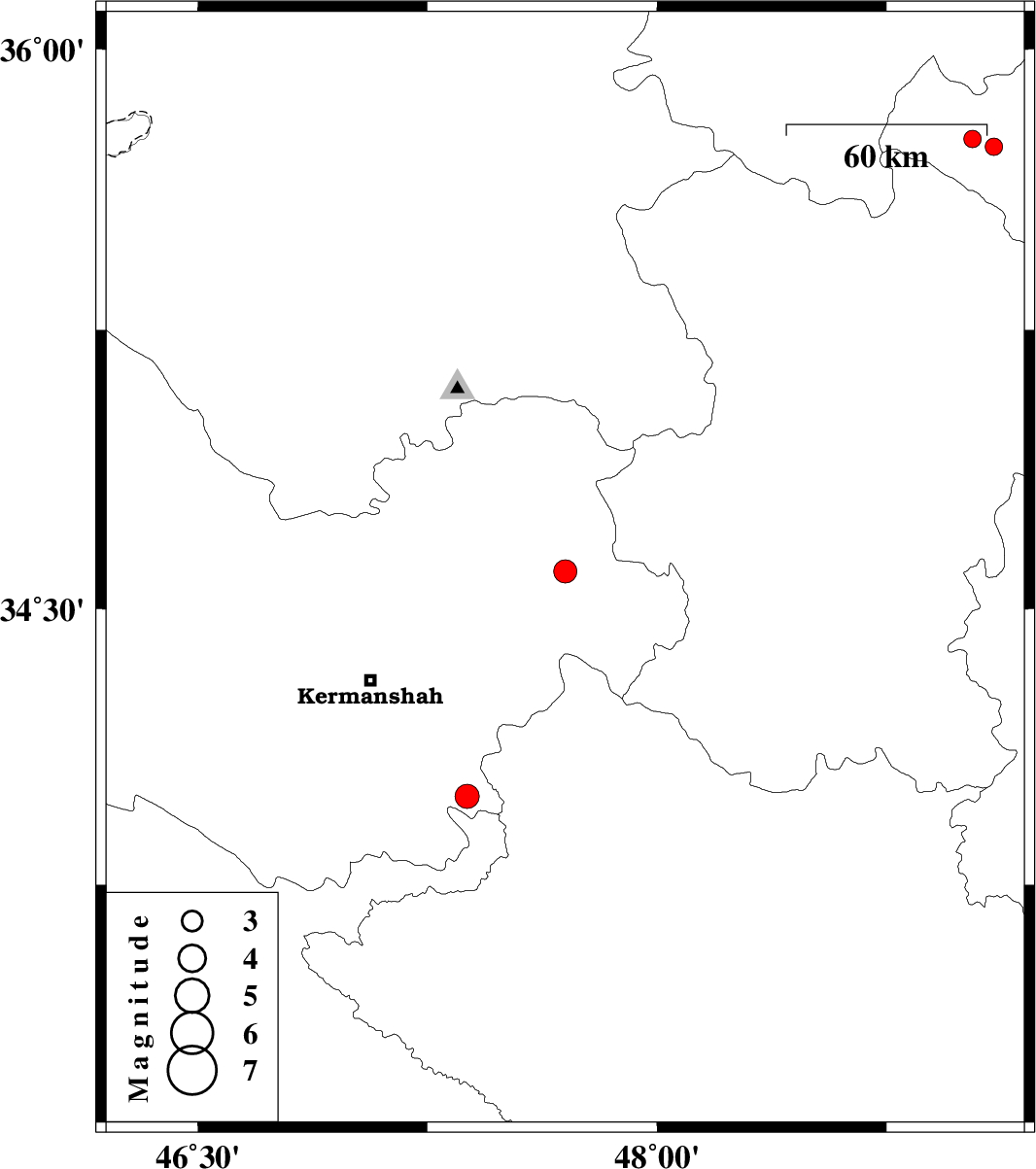 | 2014/06/18 | 13:39:06.9 | 18:09:06.9 | 34.6 | 47.7 | 14 | ML:3.4 | Kermanshah Province, 14 km North of Sahneh | ||