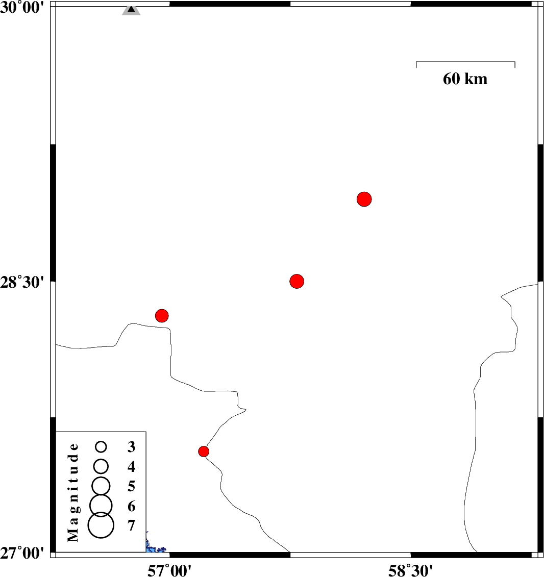 | 2014/06/18 | 00:29:39.8 | 04:59:39.8 | 28.95 | 58.21 | 16 | ML:4.1 | Kerman Province, 22 km South-West of Bam | ||