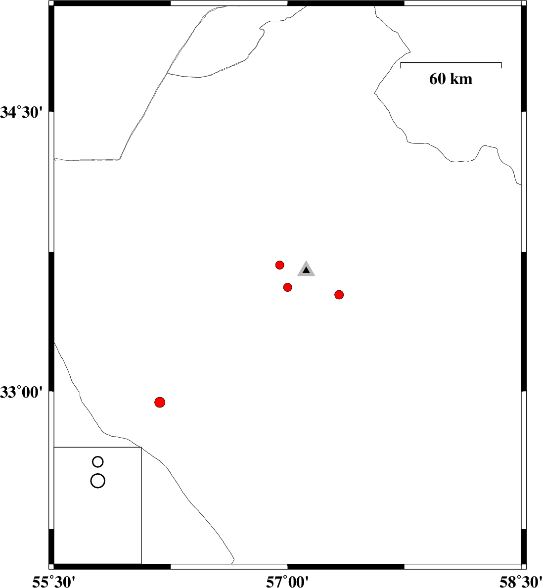 | 2014/06/09 | 23:00:31.4 | 03:30:31.4 | 32.94 | 56.18 | 37 | ML:3 | Yazd Province, 101 km South-West of Tabas |