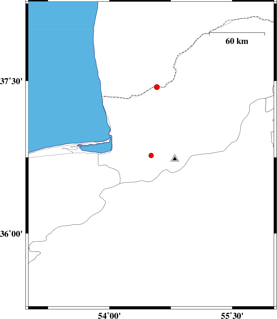 | 2014/06/30 | 16:35:38.1 | 21:05:38.1 | 36.77 | 54.51 | 18 | ML:2.7 | Golestan Province, 10 km Gorgan | ||