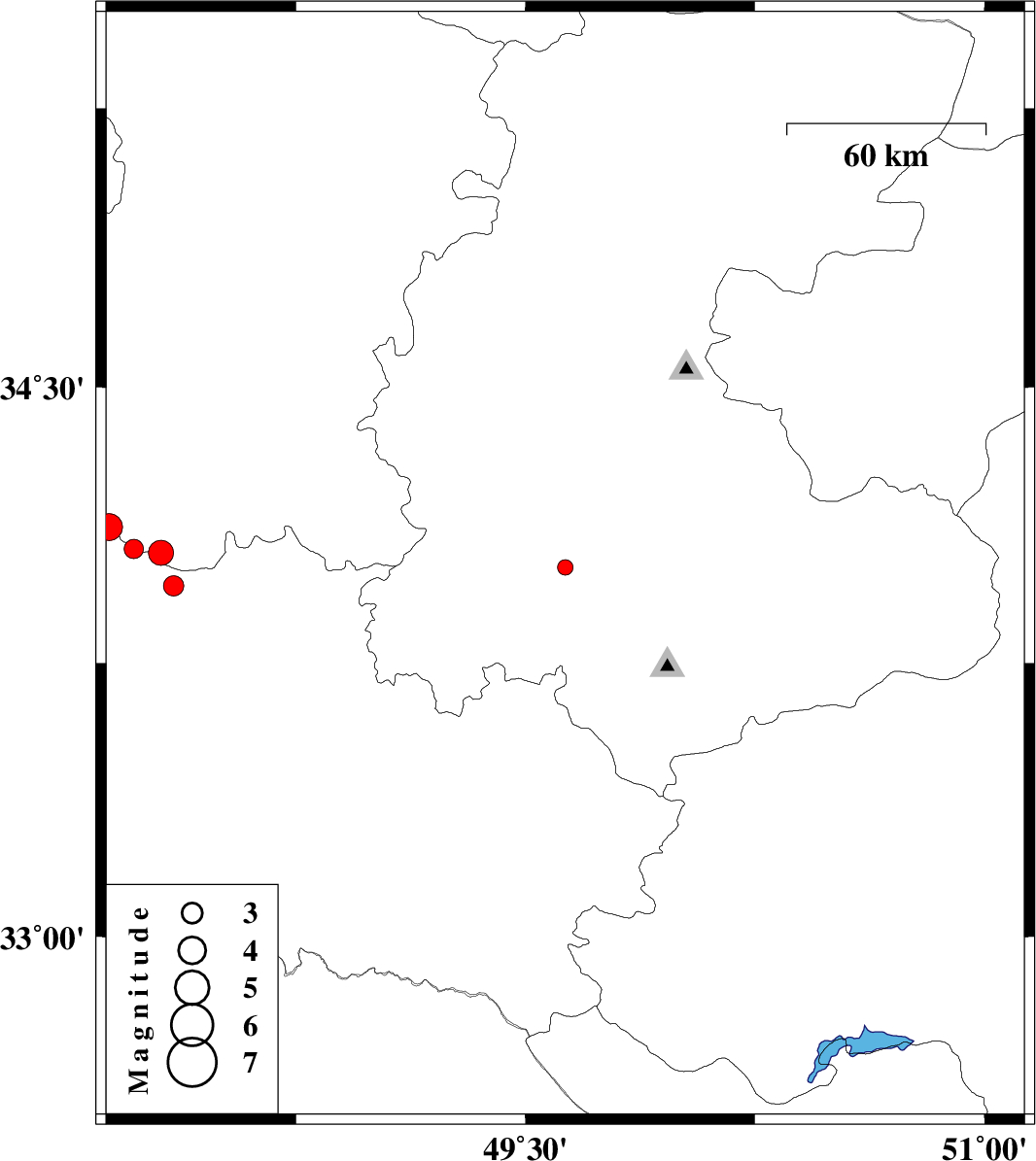 | 2014/07/02 | 11:19:56.2 | 15:49:56.2 | 34.01 | 49.63 | 14 | ML:2.3 | Markazi Province, 10 km Arak | ||