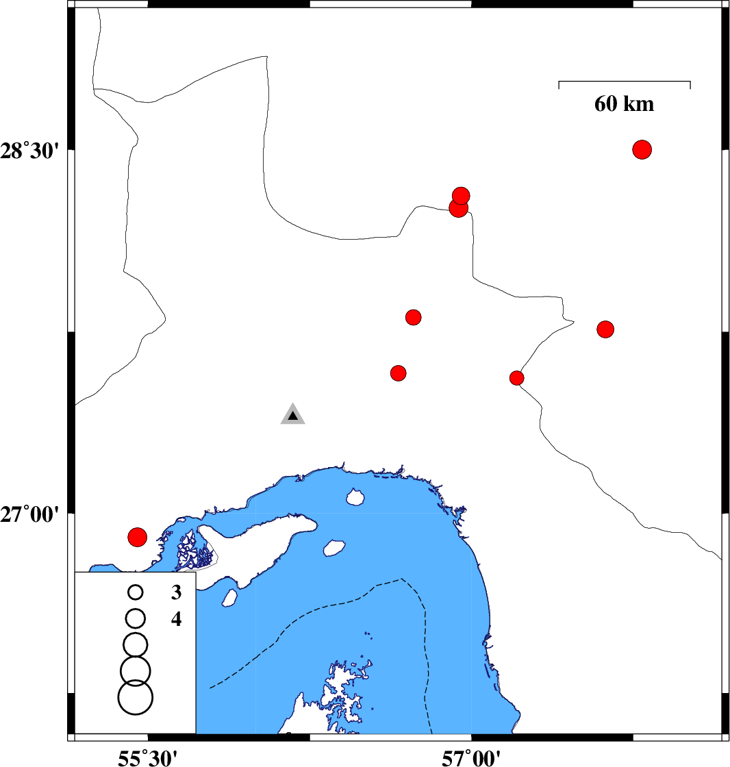 Hormozgan Province, 66 km North-West of Dehbarez | |