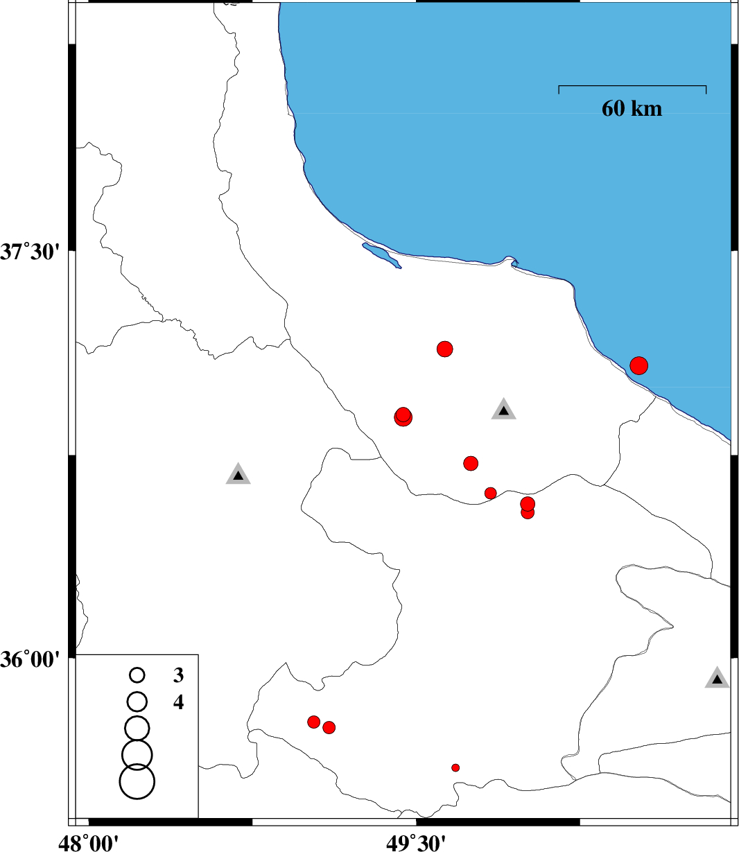| Prel. Rep. | Date | Time(UTC) | Time(Local) | Lat. | Lon. | Depth | Mag. | Region | Waveform |