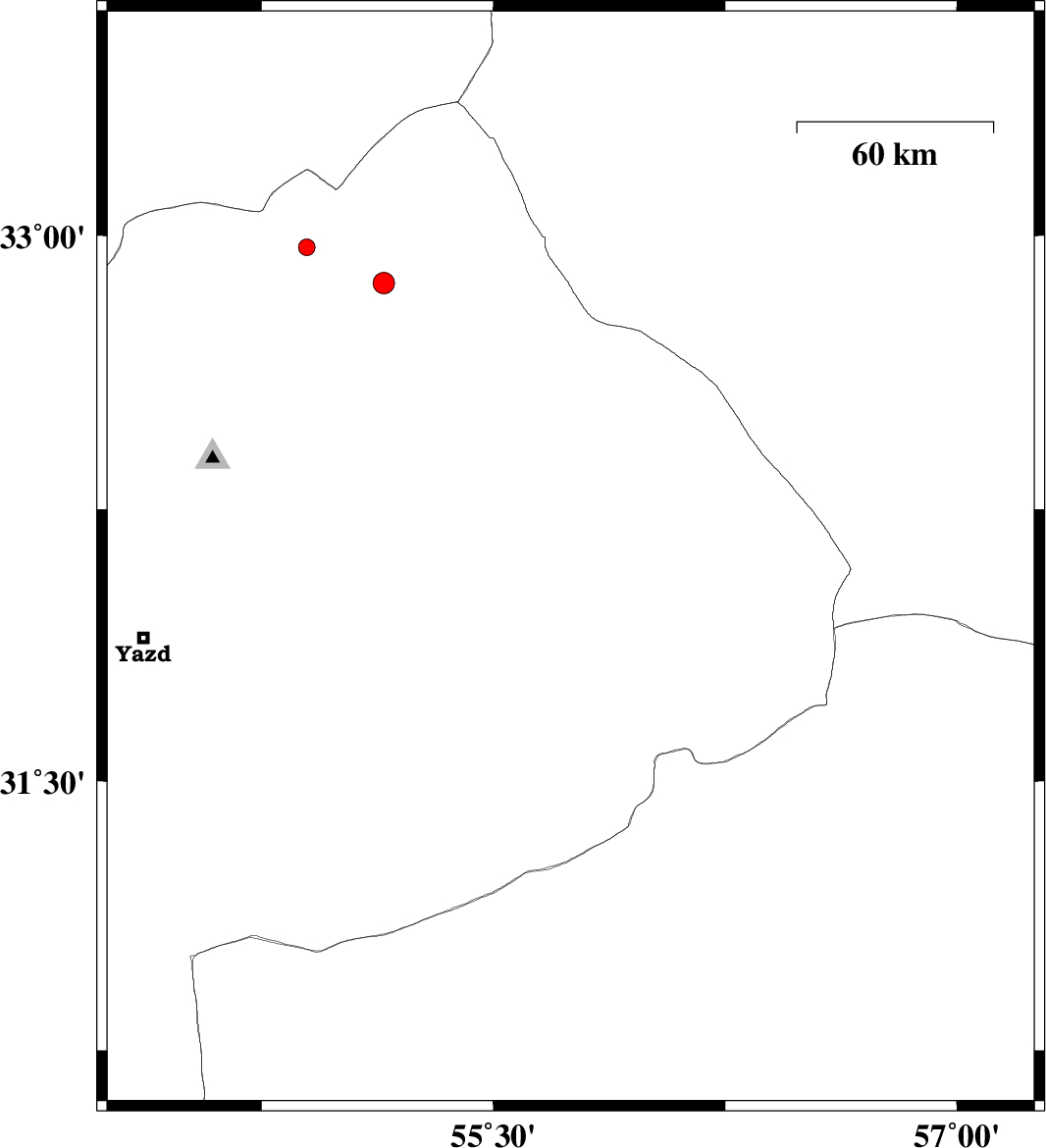 | 2014/07/28 | 20:25:33.2 | 00:55:33.2 | 32.11 | 55.75 | 18 | ML:3.1 | Yazd Province, 65 km North-East of Bafq | ||
