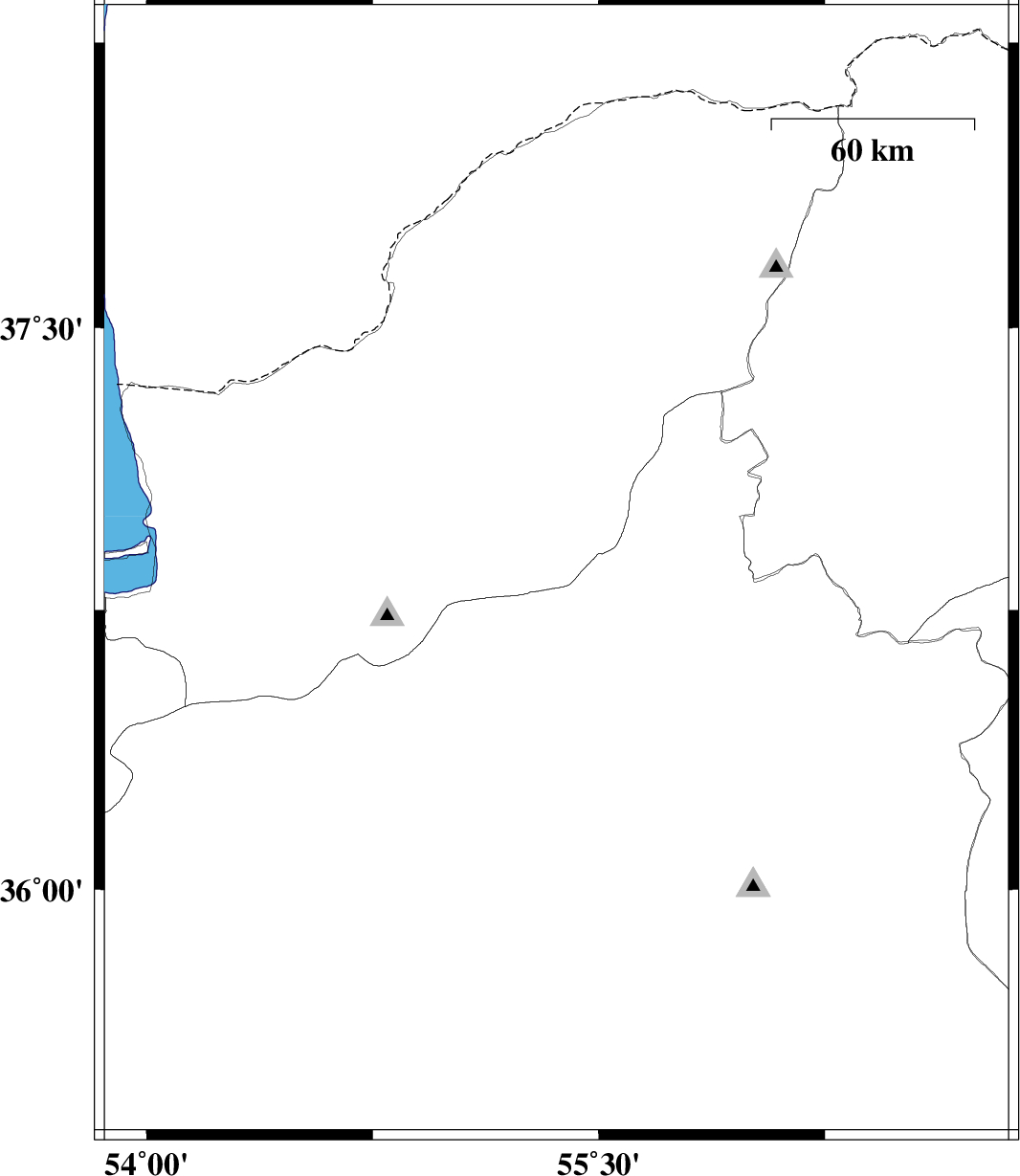 | 2014/08/03 | 13:32:50.8 | 18:02:50.8 | 36.85 | 55.36 | 15 | ML:2.9 | Golestan Province, 26 km South-East of Ramian | ||